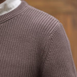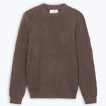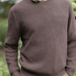 A chunky crewneck sweater knit with natural, heathered yarns in 100% organic cotton.