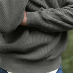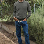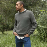 A chunky crewneck sweater knit with natural, heathered yarns in 100% organic cotton.