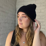 Made from 100% recycled polyester, warm double knit, ribbed.