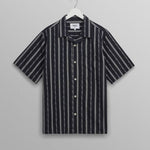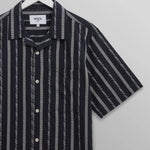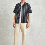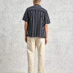 Cut for a relaxed, breezy fit, this navy shirt is made from an 100% organic cotton and features a woven broken ecru stripe design.