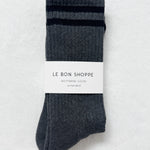 The Boyfriend Socks Extended is a calf length sport sock. They have a classic vintage sporty look but can be styled with all of your daytime looks and our favorite socks to lounge around the house.