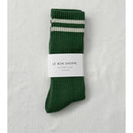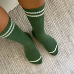 The Boyfriend Socks Extended is a calf length sport sock. They have a classic vintage sporty look but can be styled with all of your daytime looks and our favorite socks to lounge around the house.