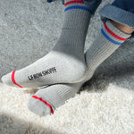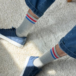 The Boyfriend Socks Extended is a calf length sport sock. They have a classic vintage sporty look but can be styled with all of your daytime looks and our favorite socks to lounge around the house.
