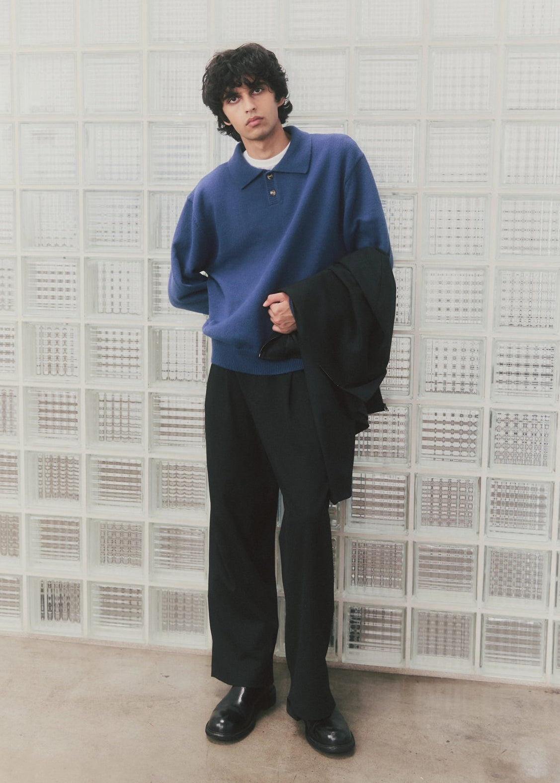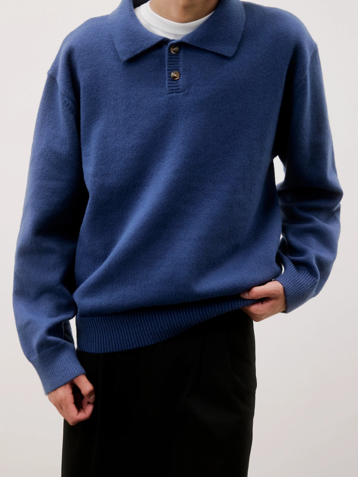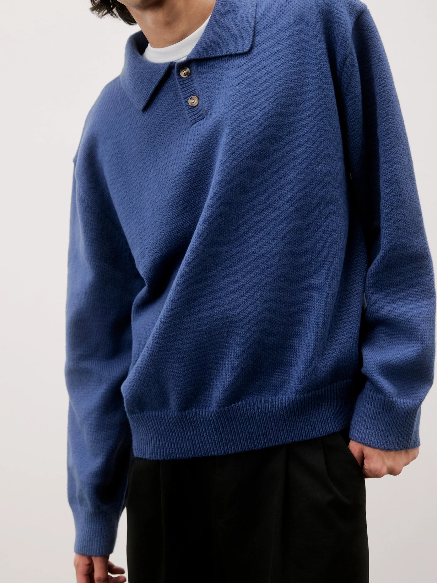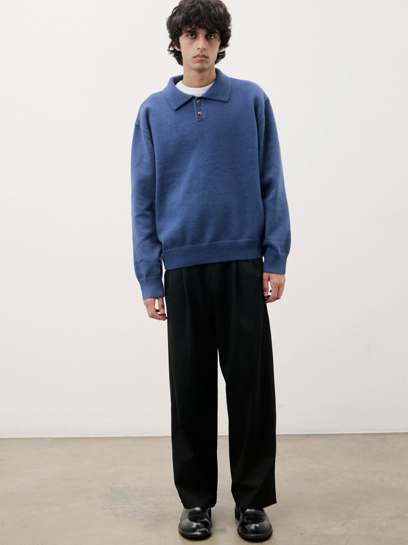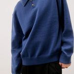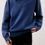 The Kurt Sweater is a relaxed-fit pullover polo crafted from a brushed midweight knit for soft comfort and warmth. It features a classic collared neckline with a partial front button closure and long sleeves, making it perfect for versatile layering.