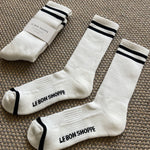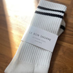 The Boyfriend Socks Extended is a calf length sport sock. They have a classic vintage sporty look but can be styled with all of your daytime looks and our favorite socks to lounge around the house.