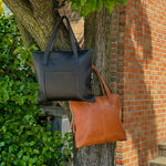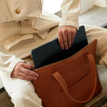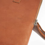 Natural grain vegetable tanned leather briefcase. Lined with printed cotton fabric and foam to protect the computer. It has a division inside and an external pocket.