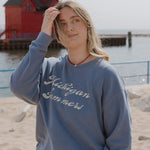 Inspired by the serene beauty of Lake Michigan, the Michigan Summers Sweatshirt by Frances Jaye offers a stylish way to stay cozy. Printed on a Comfort Colors Sweatshirt, this collection is designed with comfort and durability in mind.