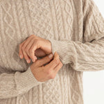 The Mohair Fisherman’s Knit in Oatmeal is a classic addition to any wardrobe. Featuring a standard fit, this cable knit offers ribbed finishes on the collar, sleeves, and hem. Designed for year-round comfort, this knit ensures an effortlessly refined look.