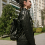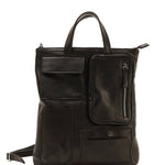 The most innovative and beautifully designed backpack does is exist. The cabernet backpack should hardly be called a backpack because of its sophistication and chicness. Constructed in natural grain, vegetable tanned black leather, it features four different size pockets in front, one big pocket on the back, division inside. Complete with adjustable straps and lined with printed fabric.
