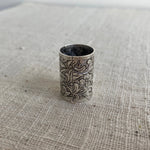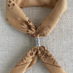 Dress up your bandana or scarf with a stamped slide. The floral and filigree patterning is nod to traditional tooled leather work.