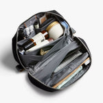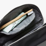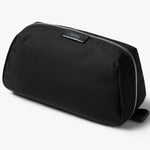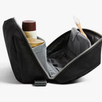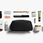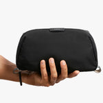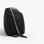 This toiletry kit is perfect for extended trips and larger products. With an angled zipper, you can easily access items without having to dig through the entire kit. The sturdy pocket keeps bottles organized and the stretchy mesh pockets can accommodate various small items. Keep loose items out of sight with the zip pocket, while the magnetic-closure shelf keeps your toothbrush separate. Soft grab loops allow for easy one-finger carry and removal from a deep bag. Plus, the water-resistant interior lining can be easily wiped clean. Made with durable, recycled fabric and premium, eco-tanned leather, this kit is built to last.
