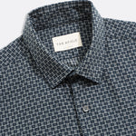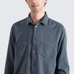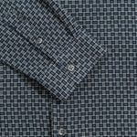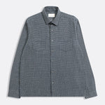 This dobby-woven fabric forms small repeating blocks, a nod to the geometric textiles of the Bauhaus, where pattern and structure were treated as one. Light yet structured, it has a subtle three-dimensional feel that comes alive up close. Cleanly cut with two pattern-matched chest pockets, it lets the fabric take centre stage.