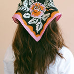 Wild roses, ferns, California poppies and butterflies flutter across this bold bandana.