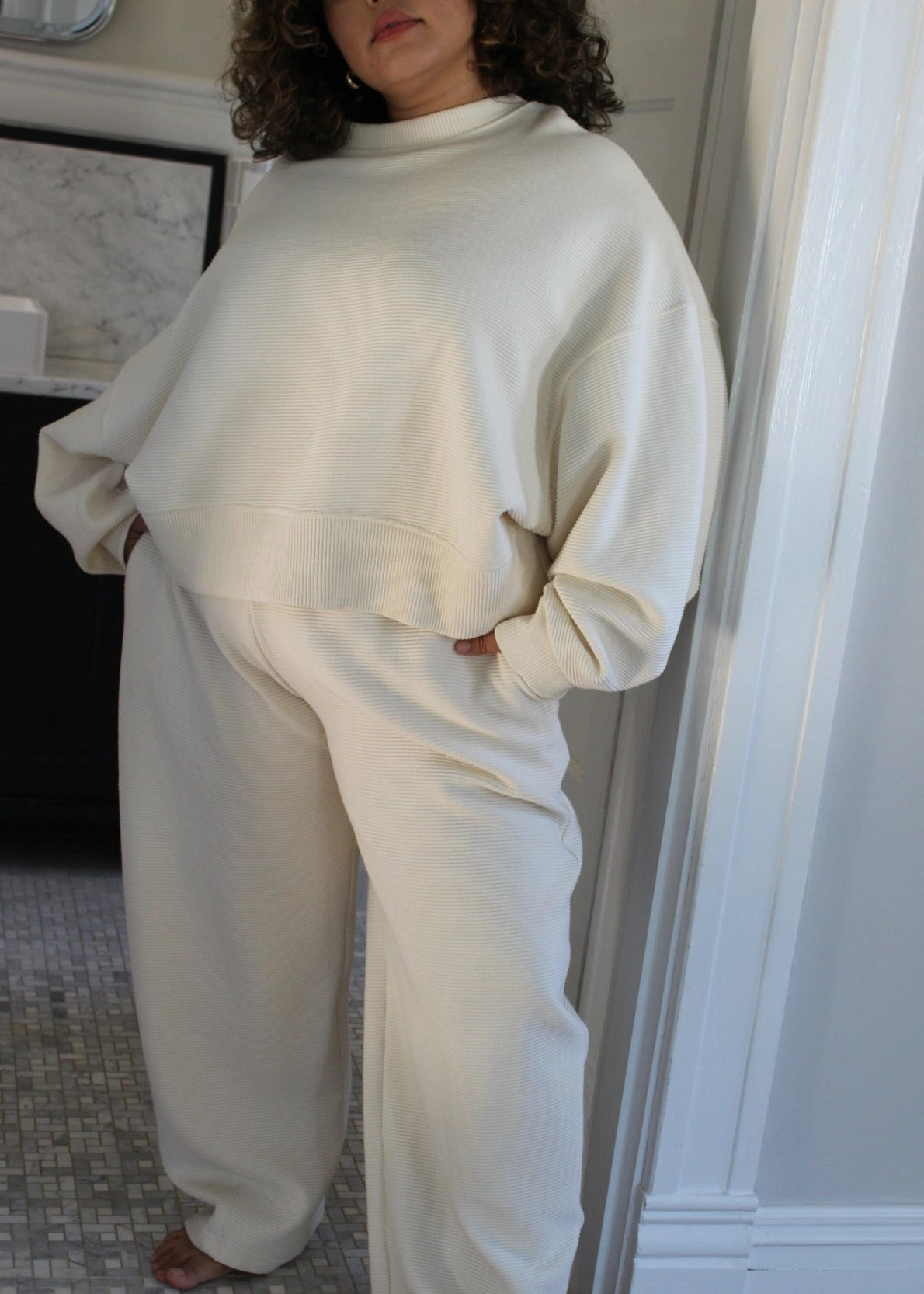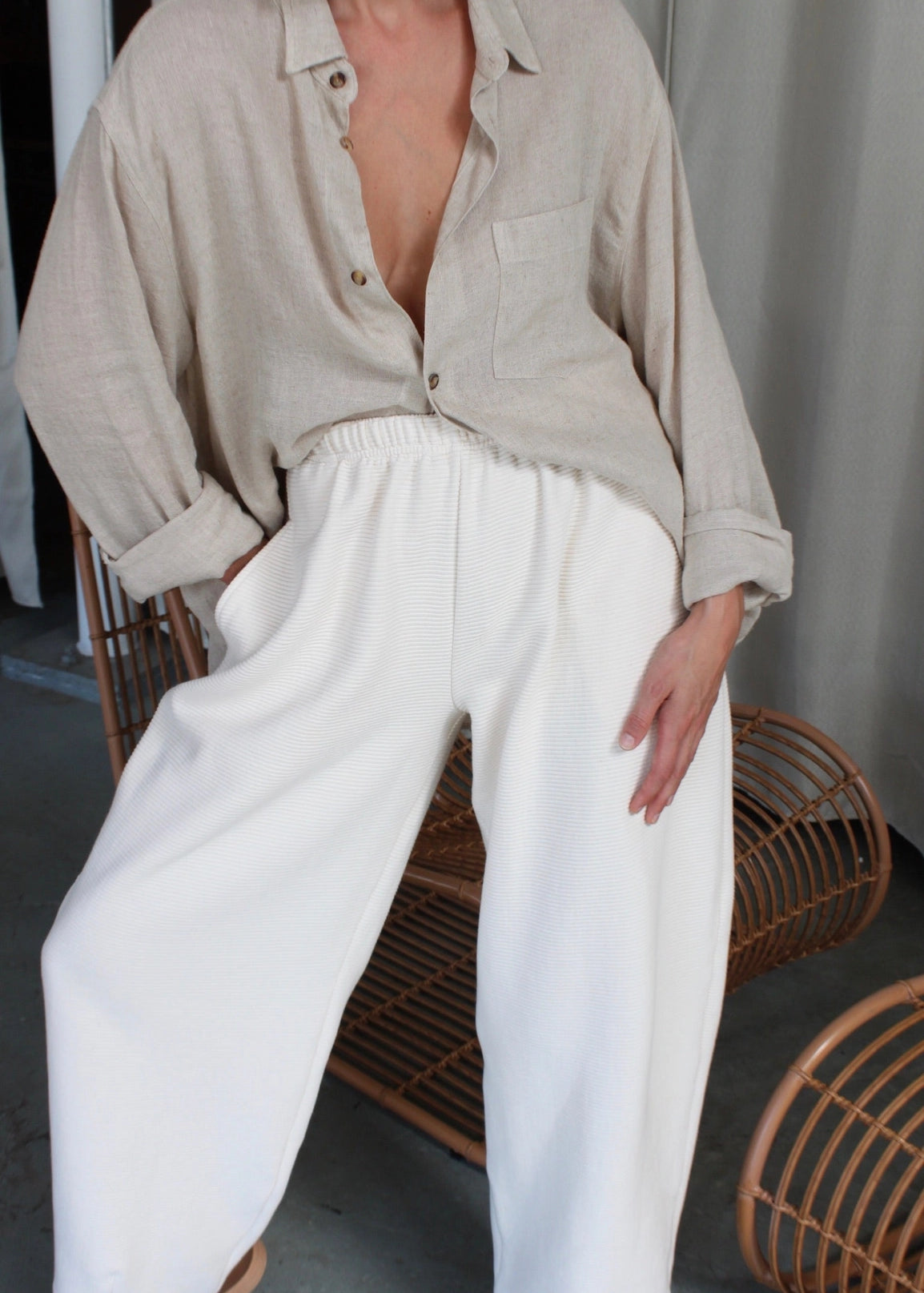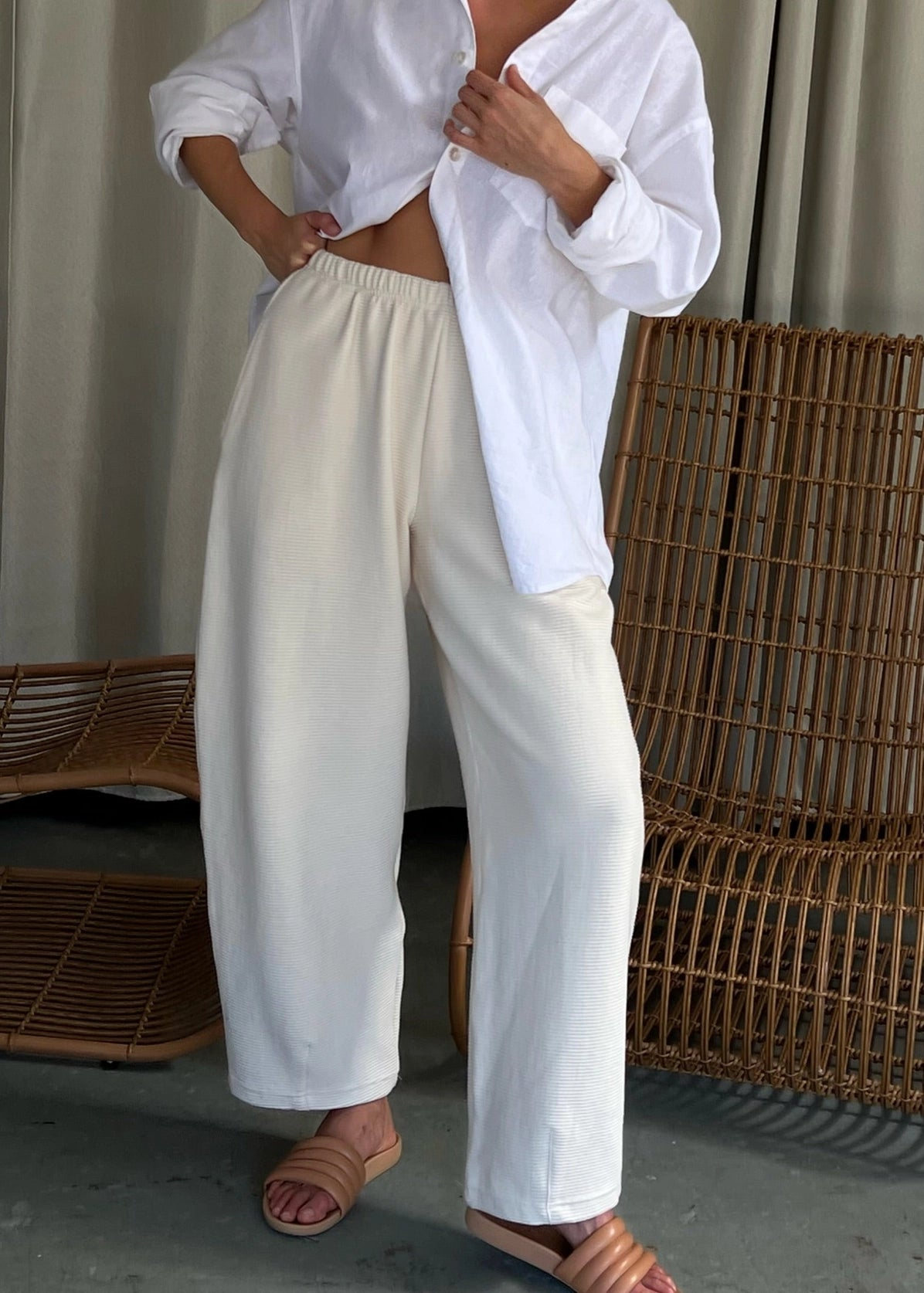 Camden Rippled Cotton Curve Pant - Cream