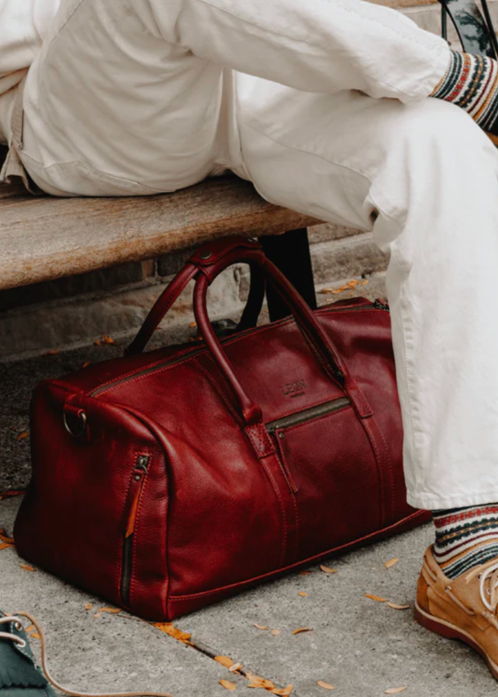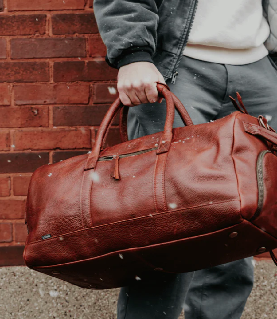 This Leather Duffel in rich brandy color offers a durable and stylish way to carry your essentials. Crafted from high-quality leather, it combines toughness with a timeless look, making it perfect for travel or everyday use. Its spacious interior keeps your belongings organized and easy to access, while the comfortable handles make carrying hassle-free. A versatile bag that suits any adventure with effortless style.