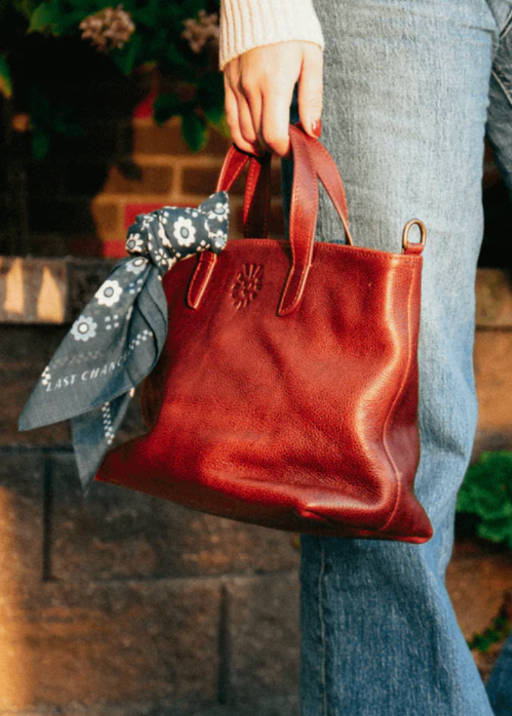 This Leather Mini Tote Bag in a warm brandy color offers a stylish and compact way to carry your essentials. Its sleek design fits comfortably in your hand or over your arm, making it perfect for daily errands or casual outings. Crafted from quality leather, it combines durability with a timeless look that complements any outfit.