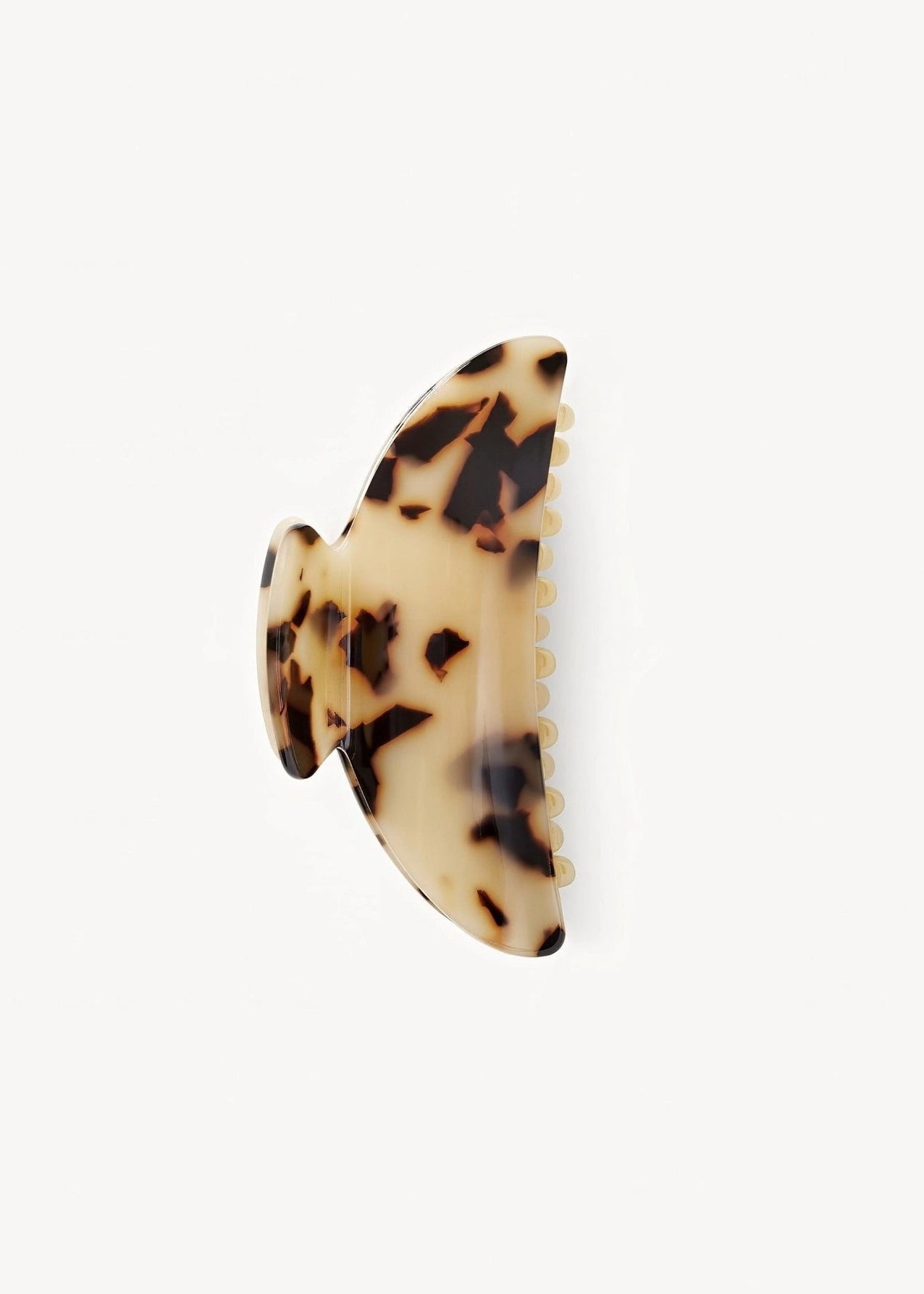 A double-walled hair claw designed to hold medium volumes of hair, handcrafted from Italian acetate with reinforced hardware. Recommended for all hair types and textures.