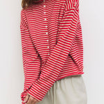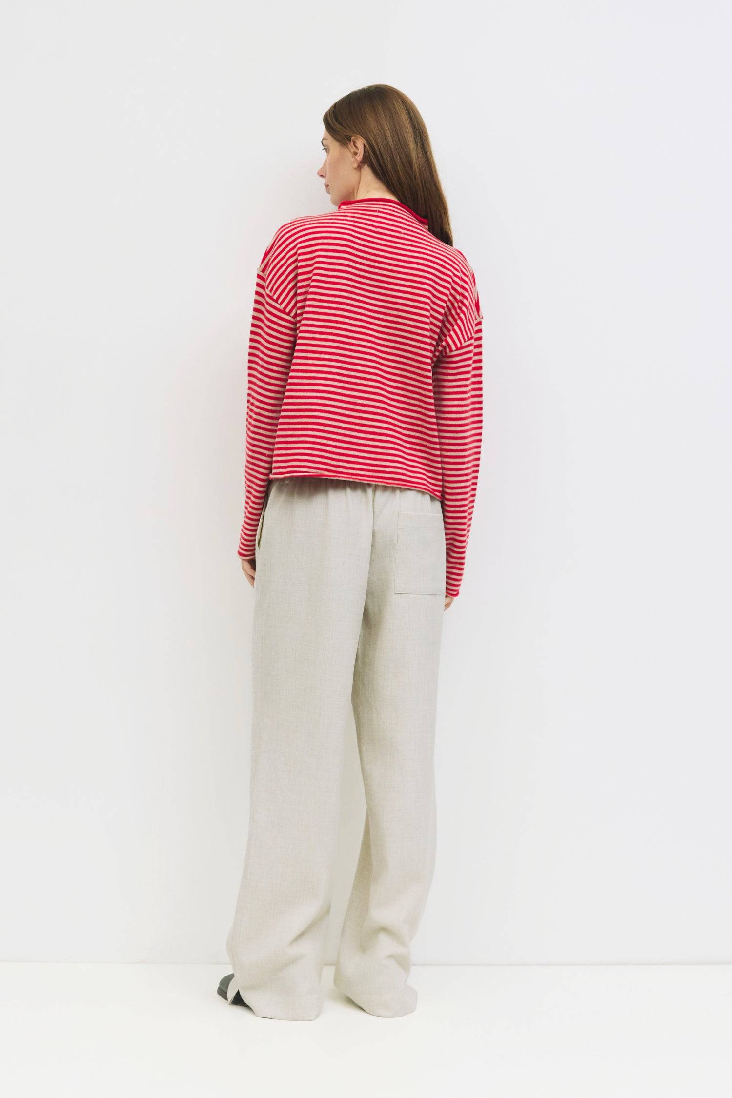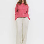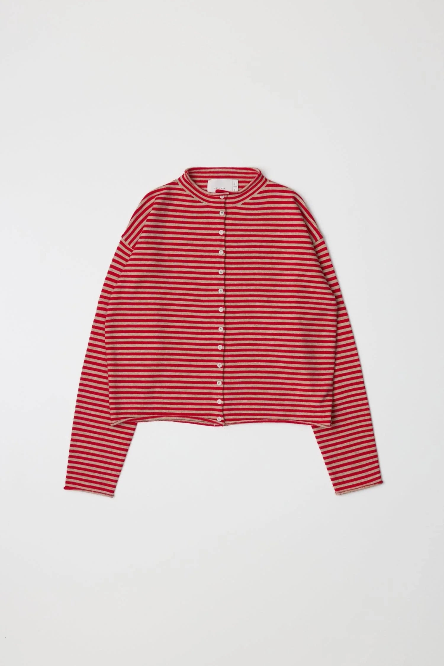 The Elisa Cardigan is a striped button-up cardigan designed with a relaxed fit for everyday wear. Finished with rolled edges on the neckline, cuffs, and bottom, it’s crafted from a mid-weight knit for a comfortable, textured look.