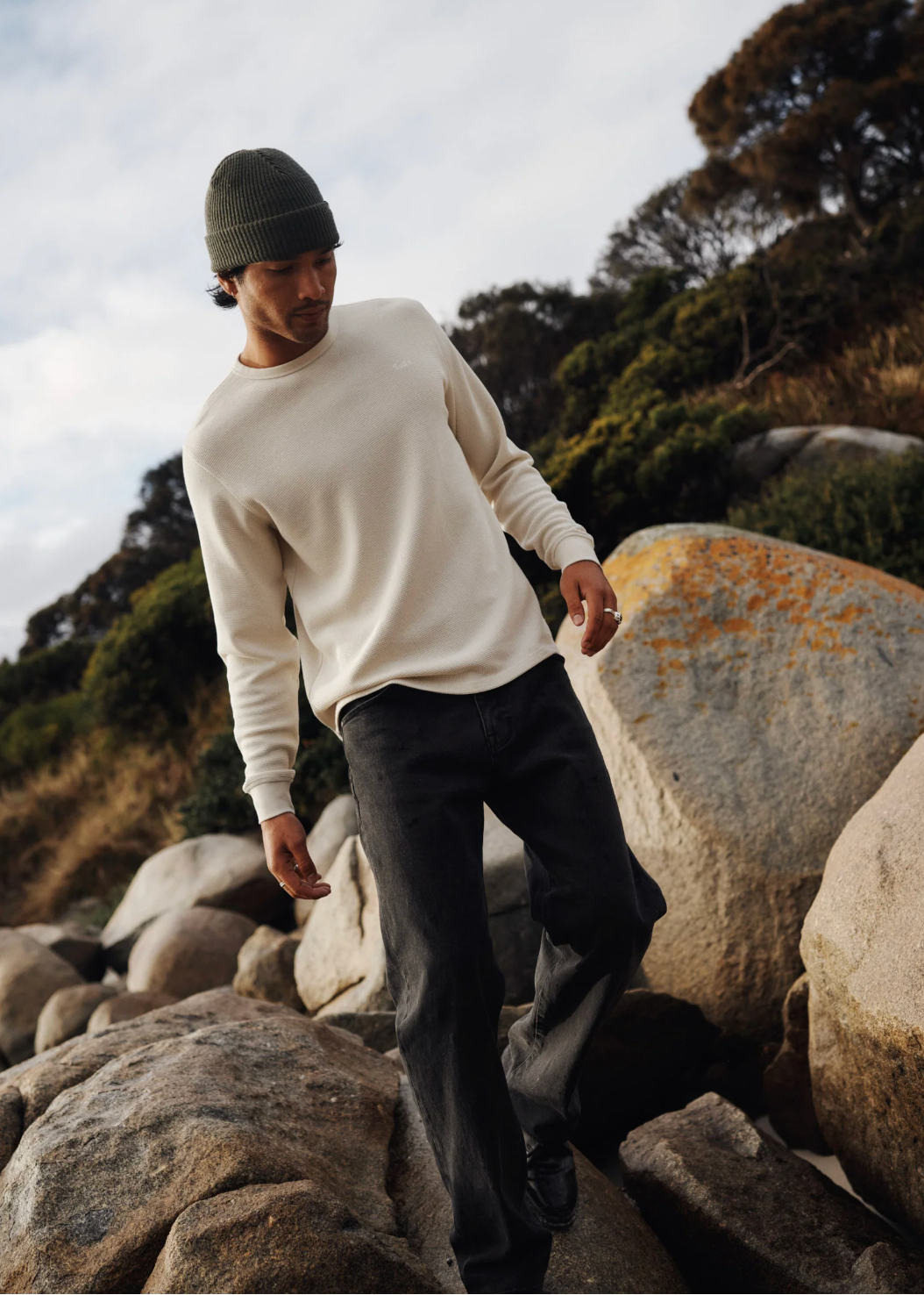 The Therman Thermal is a classic long-sleeved men's thermal. It is made from a cotton-polyester waffle knit.
