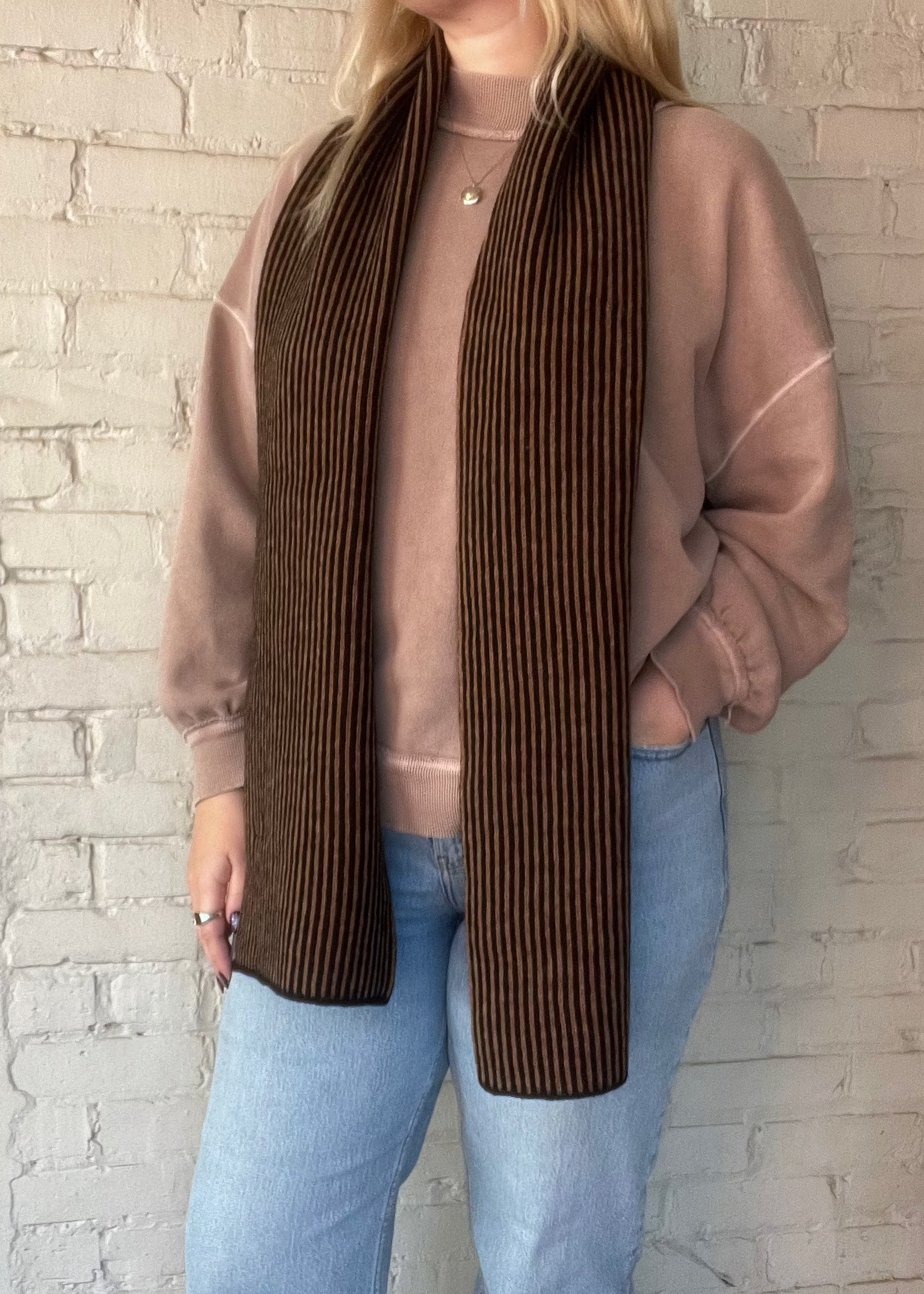The Tiree Scarf in Black and Brown offers a timeless blend of style and comfort. Its classic color combination makes it easy to pair with any outfit, while the soft fabric keeps you cozy throughout the day. Perfect for adding a simple yet elegant touch to your look, this scarf is a versatile accessory for all seasons.