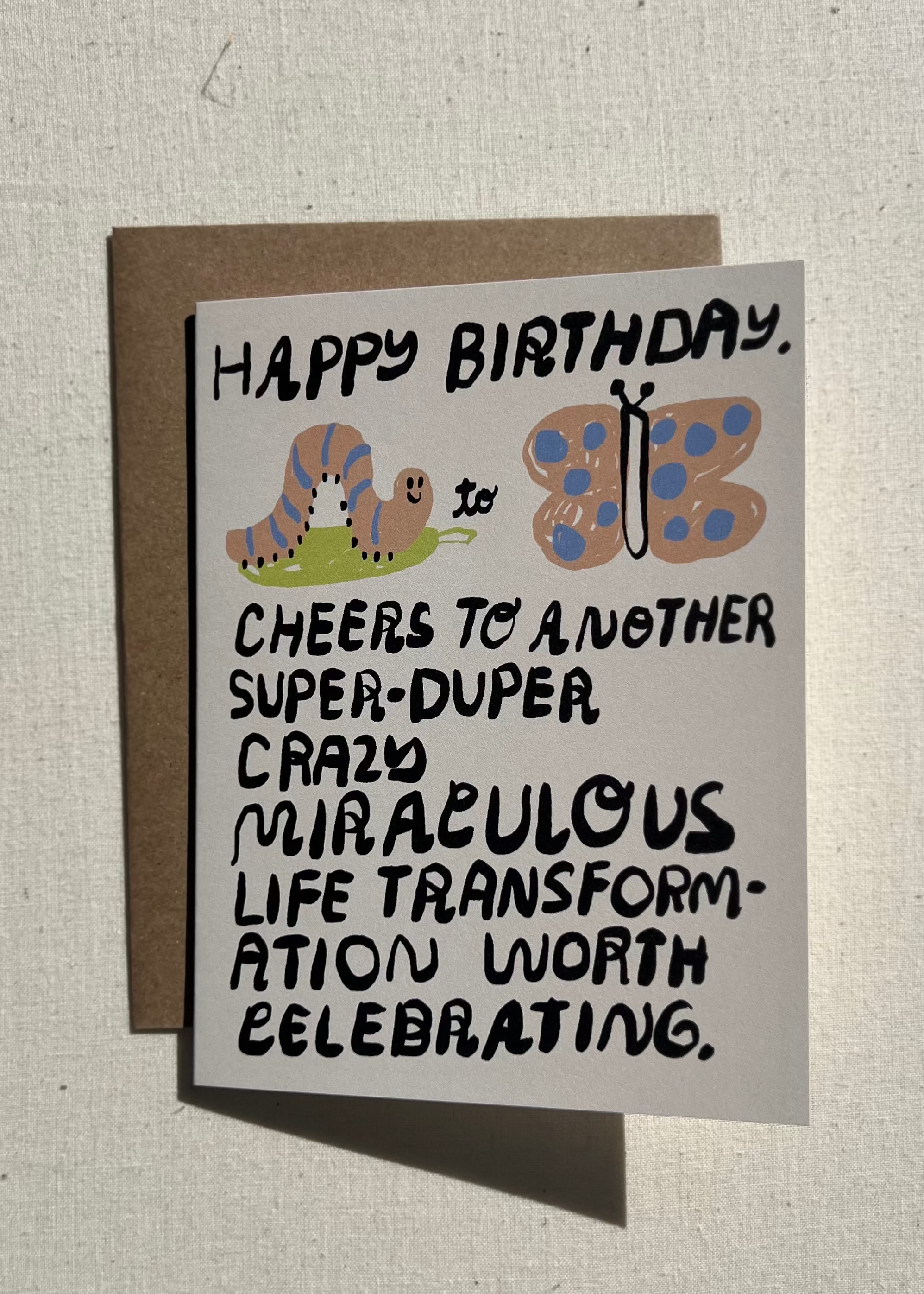 A card for the friend who’s been quietly (or loudly) becoming someone new. This year held messy middles & weird breakthroughs. Small wins and big feels, maybe some soft sadness tucked in there too. Here’s to the next round of changes, to becoming even more them!