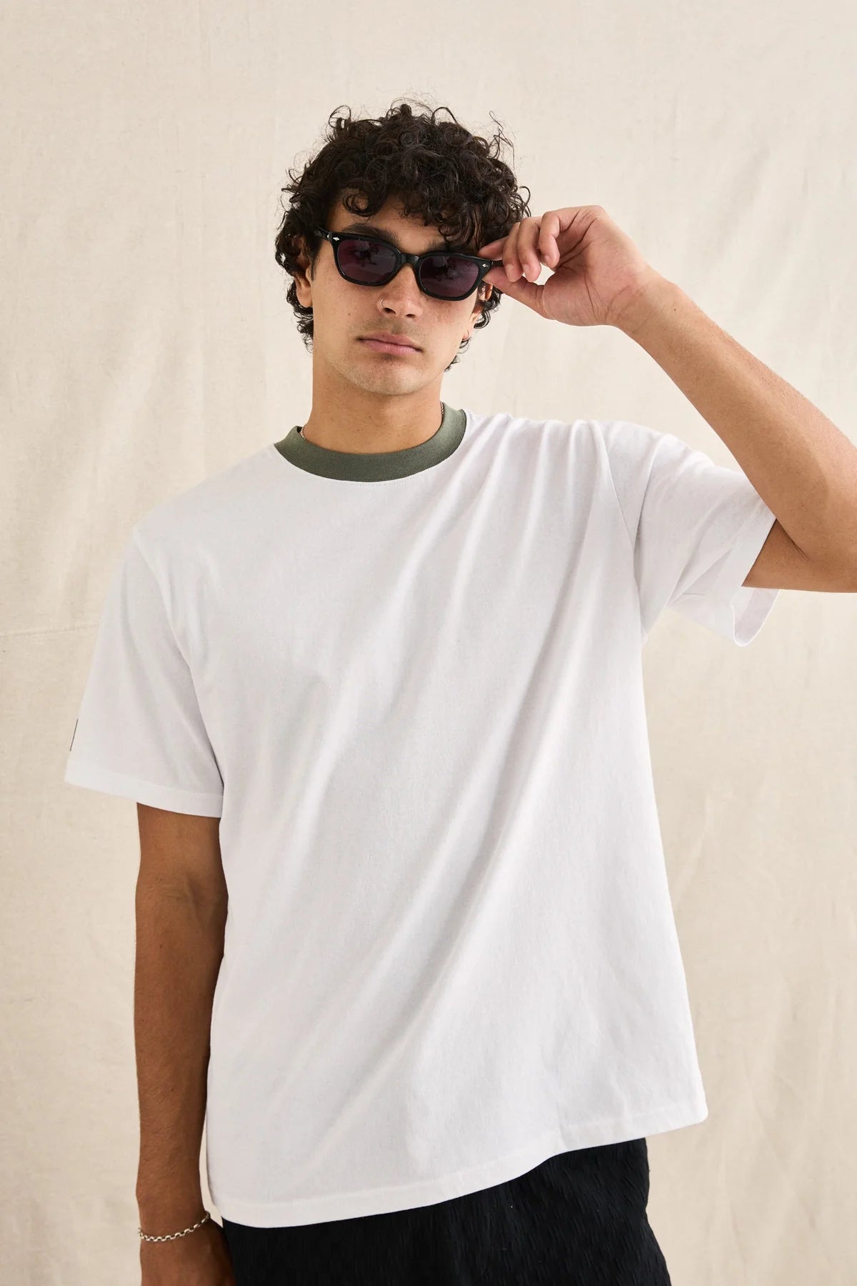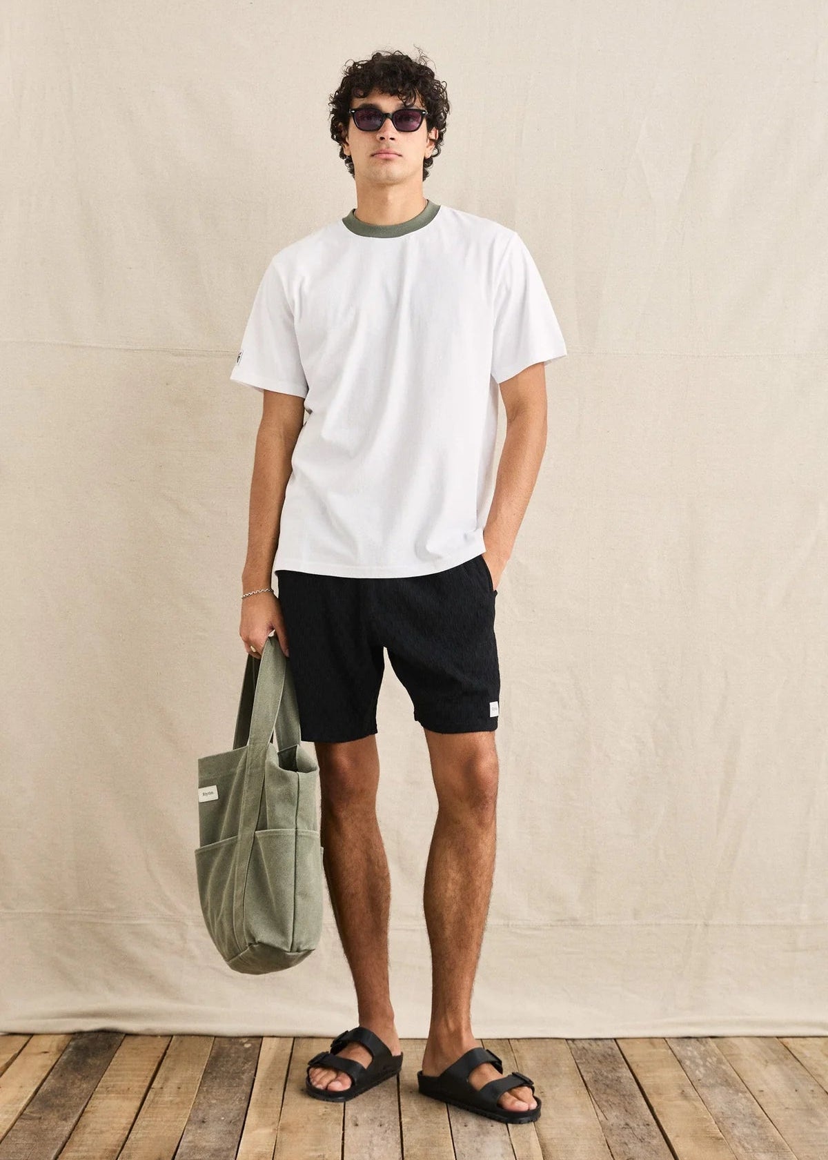 The Merge Vintage SS T-Shirt offers a relaxed, sun-faded look with a contrast collar and woven label detail at the sleeve hem. Designed with a classic vintage block and finished with Rhythm trims, it’s an effortless staple for everyday wear. Soft-washed for that lived-in coastal feel.