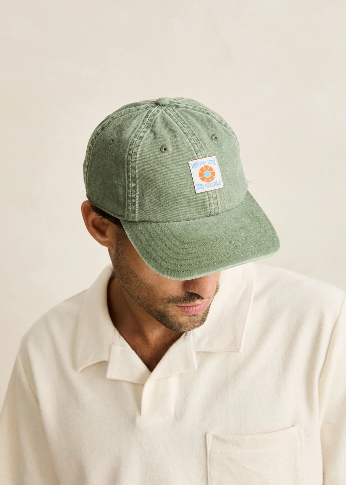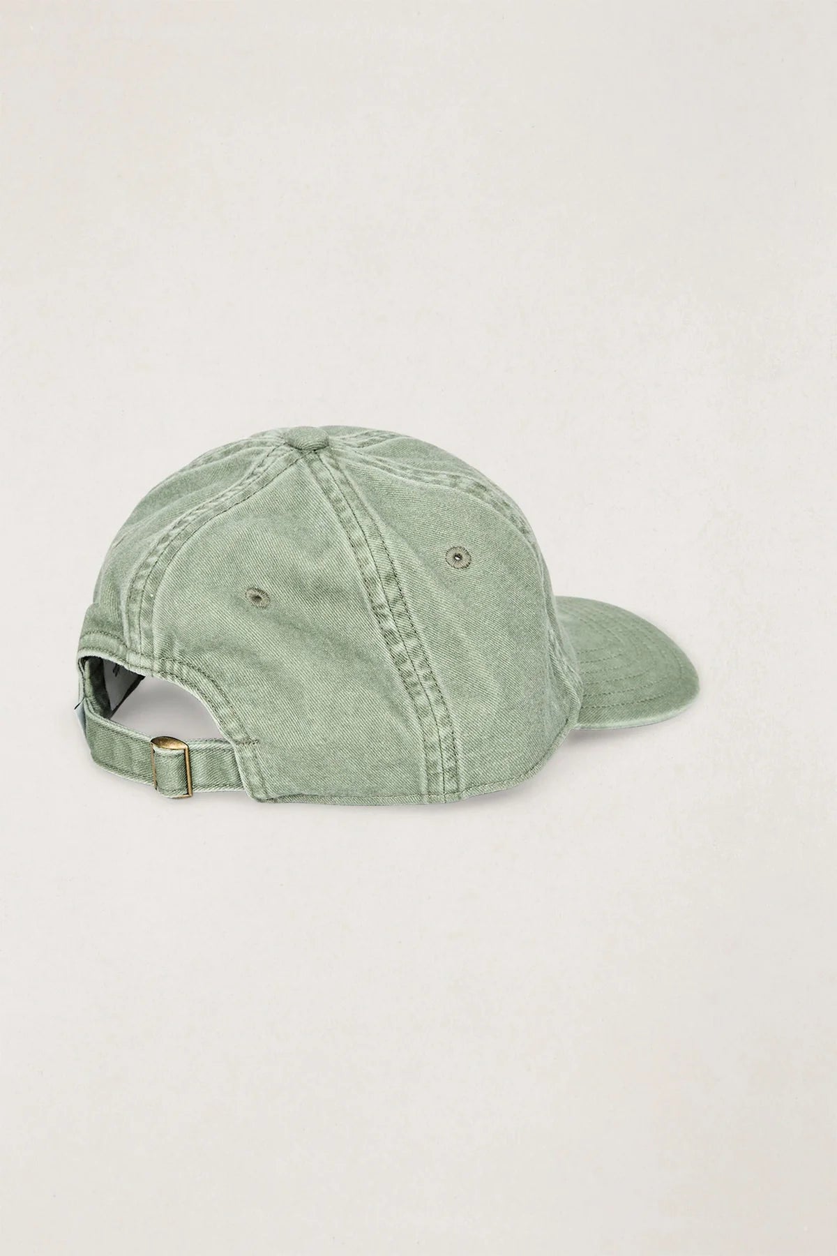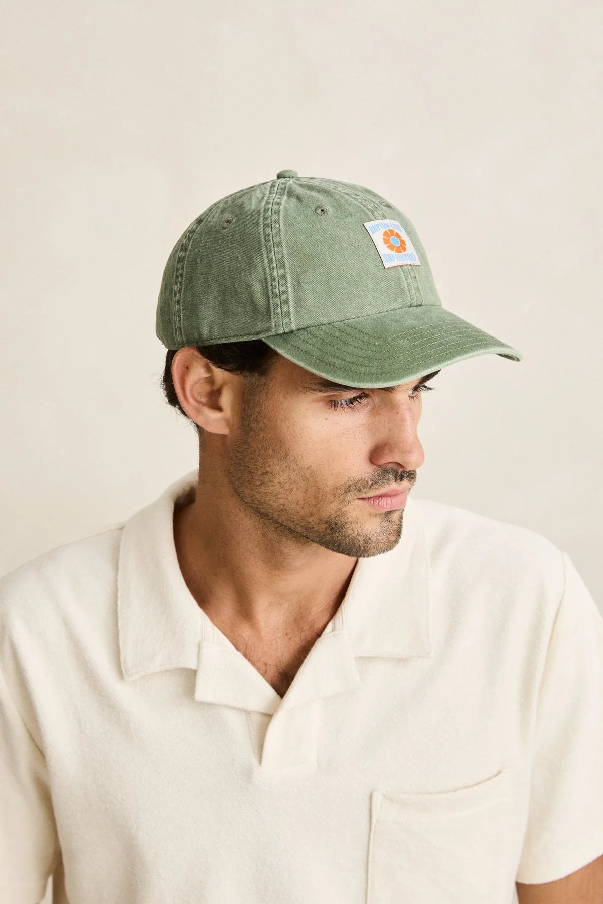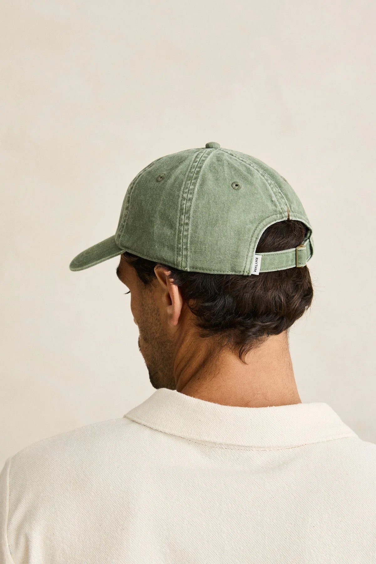 A lightweight sports cap in olive with low crown, curved peak and adjustable strap. Features embroidered patch and tonal detailing.