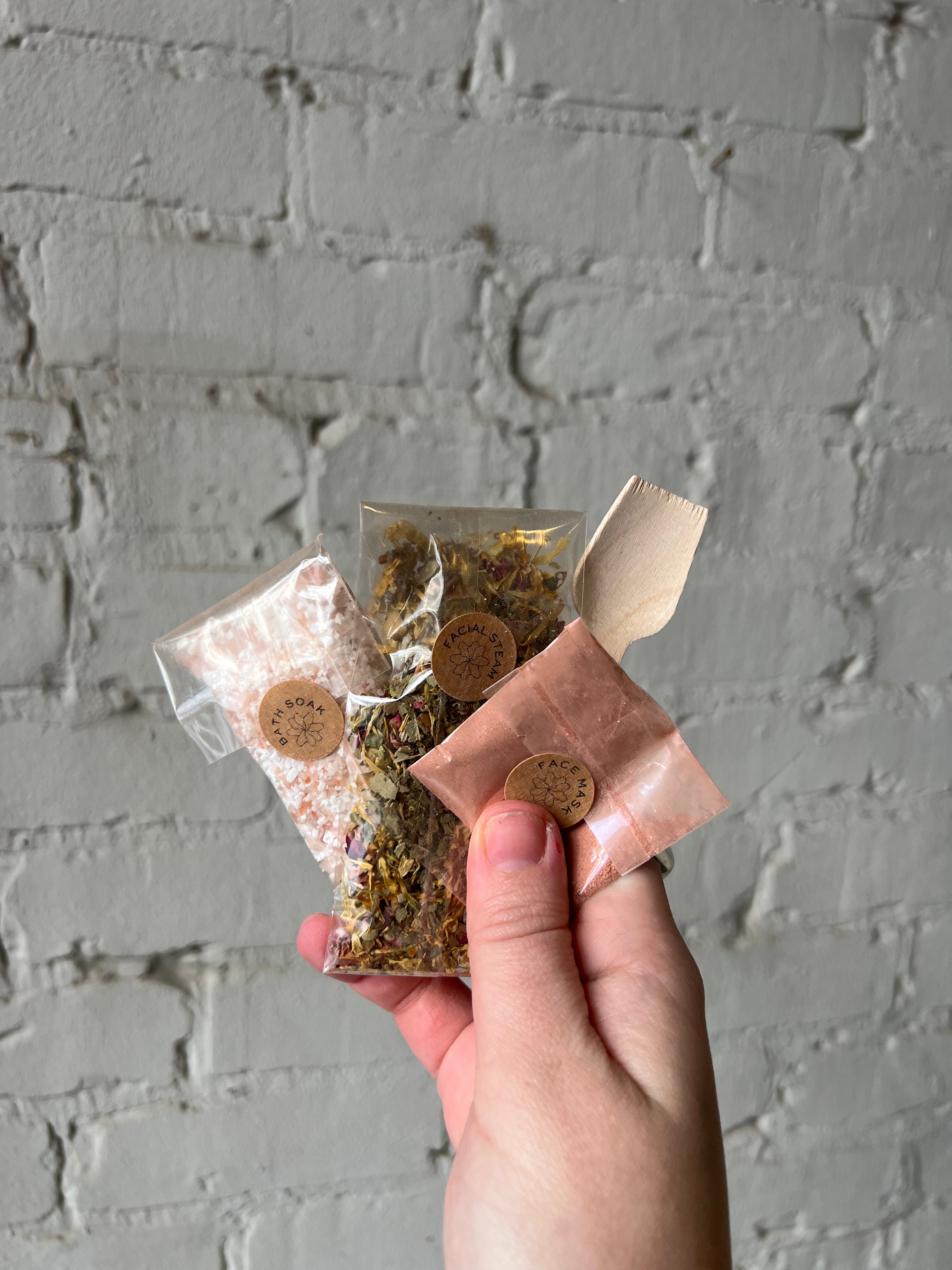 - Contains one bath soak, facial mask, birchwood mask applicator, and one facial steamer