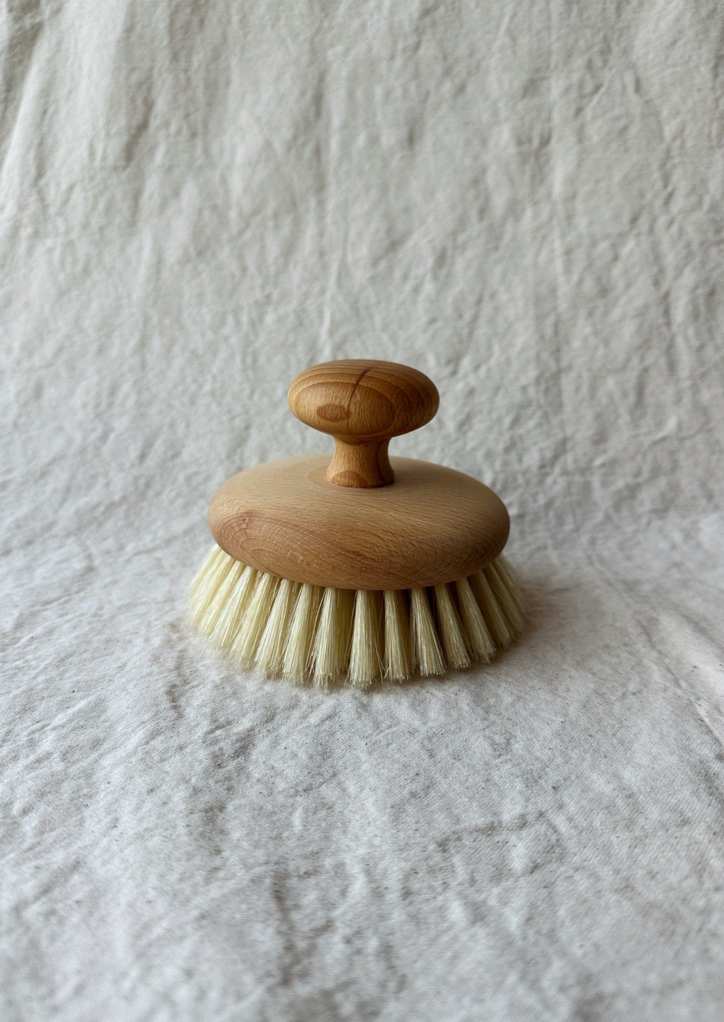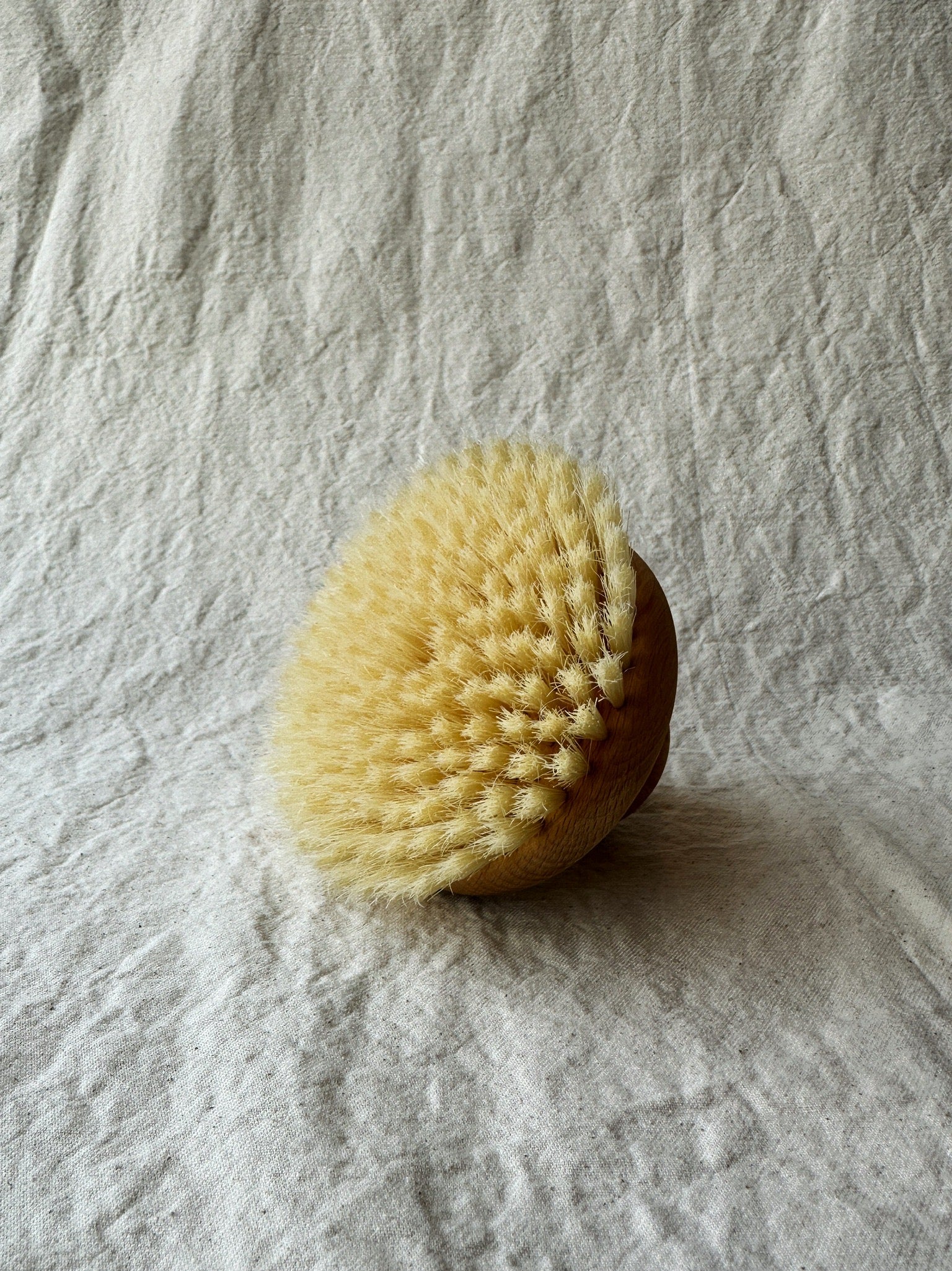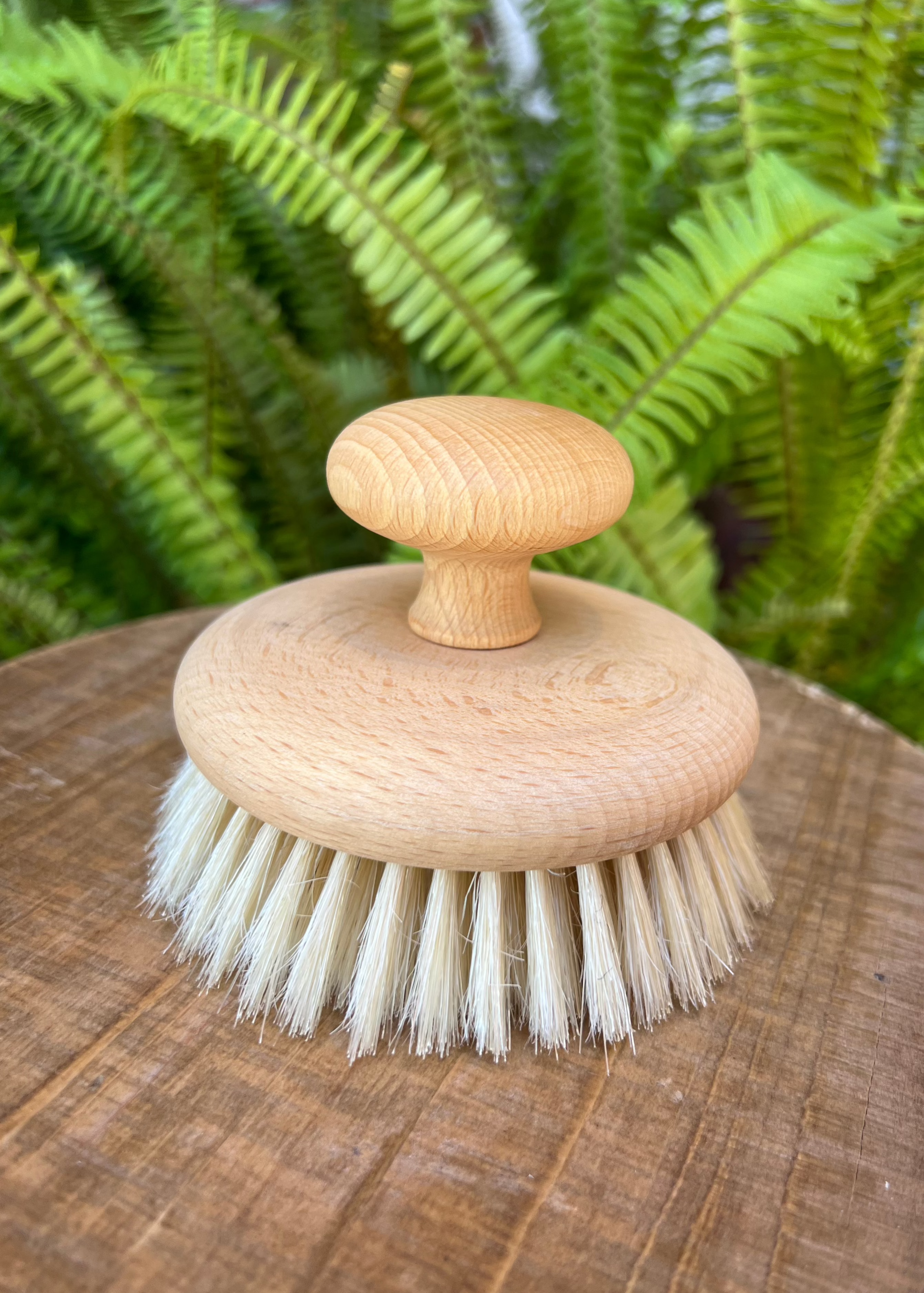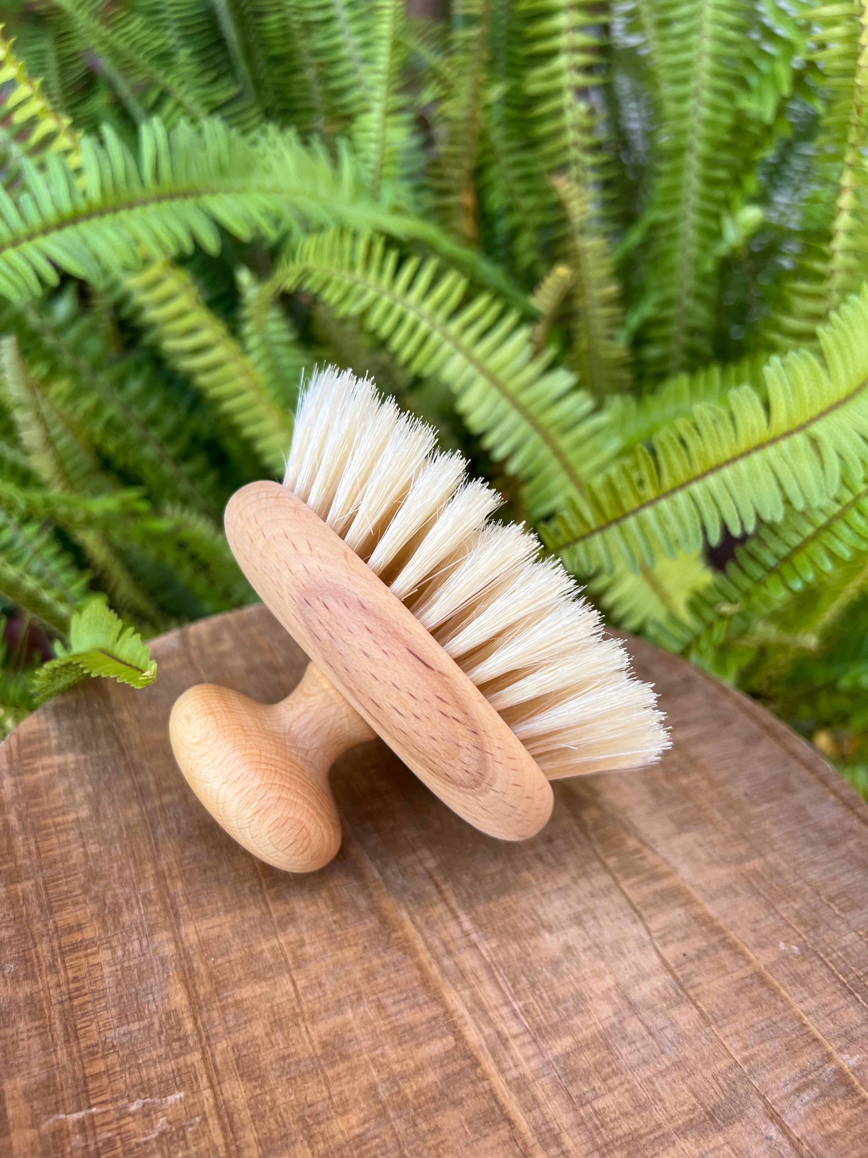 This massage brush is a solid beechwood brush with natural tampico fiber bristles that are great for exfoliating and stimulating circulation in the shower or bath. A sturdy, ergonomic knob fits comfortably in the palm and the brush head is generously sized.