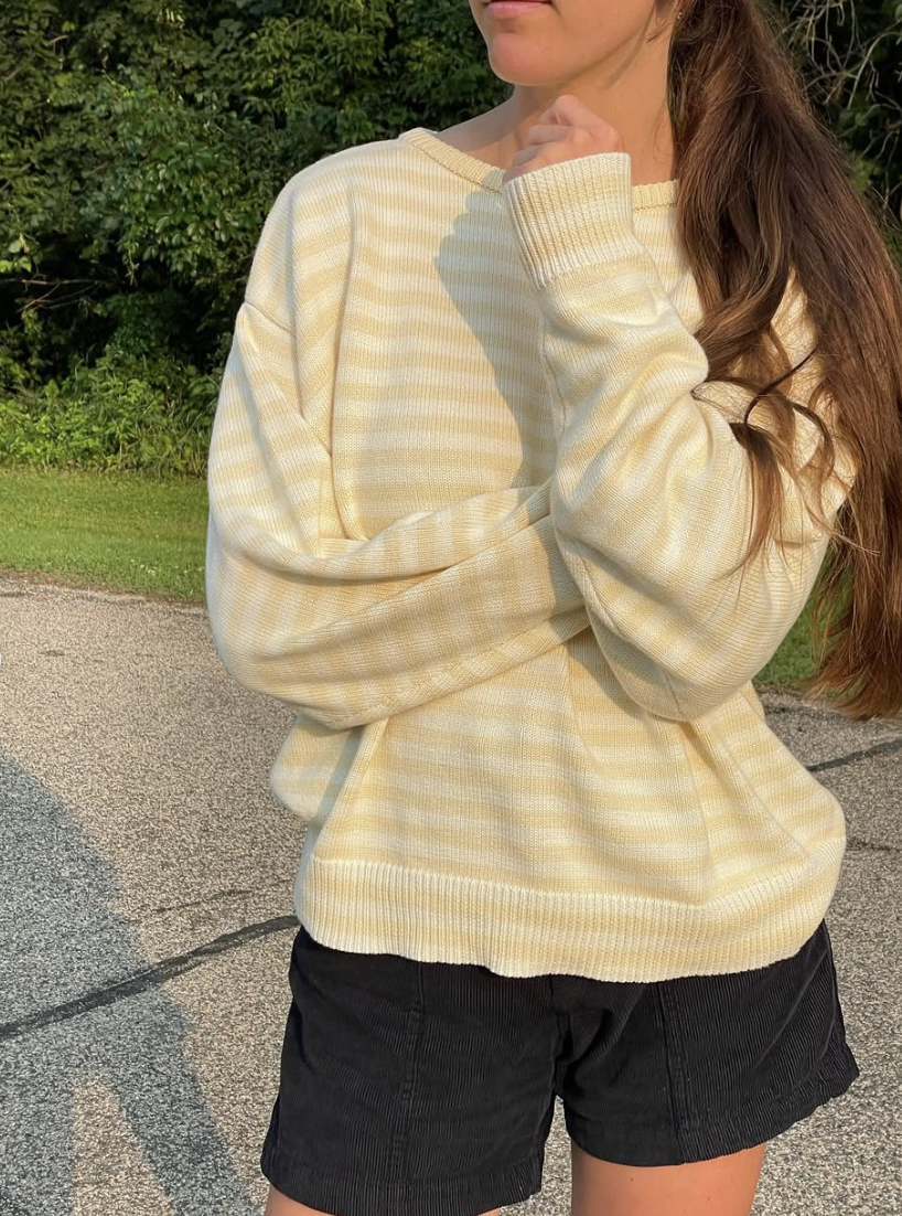 This will be mistaken for a vintage sweater. In the perfect stolen-from-the-back-of-your-dad's-closet fit. Long sleeves with a wide, boxy cut.
