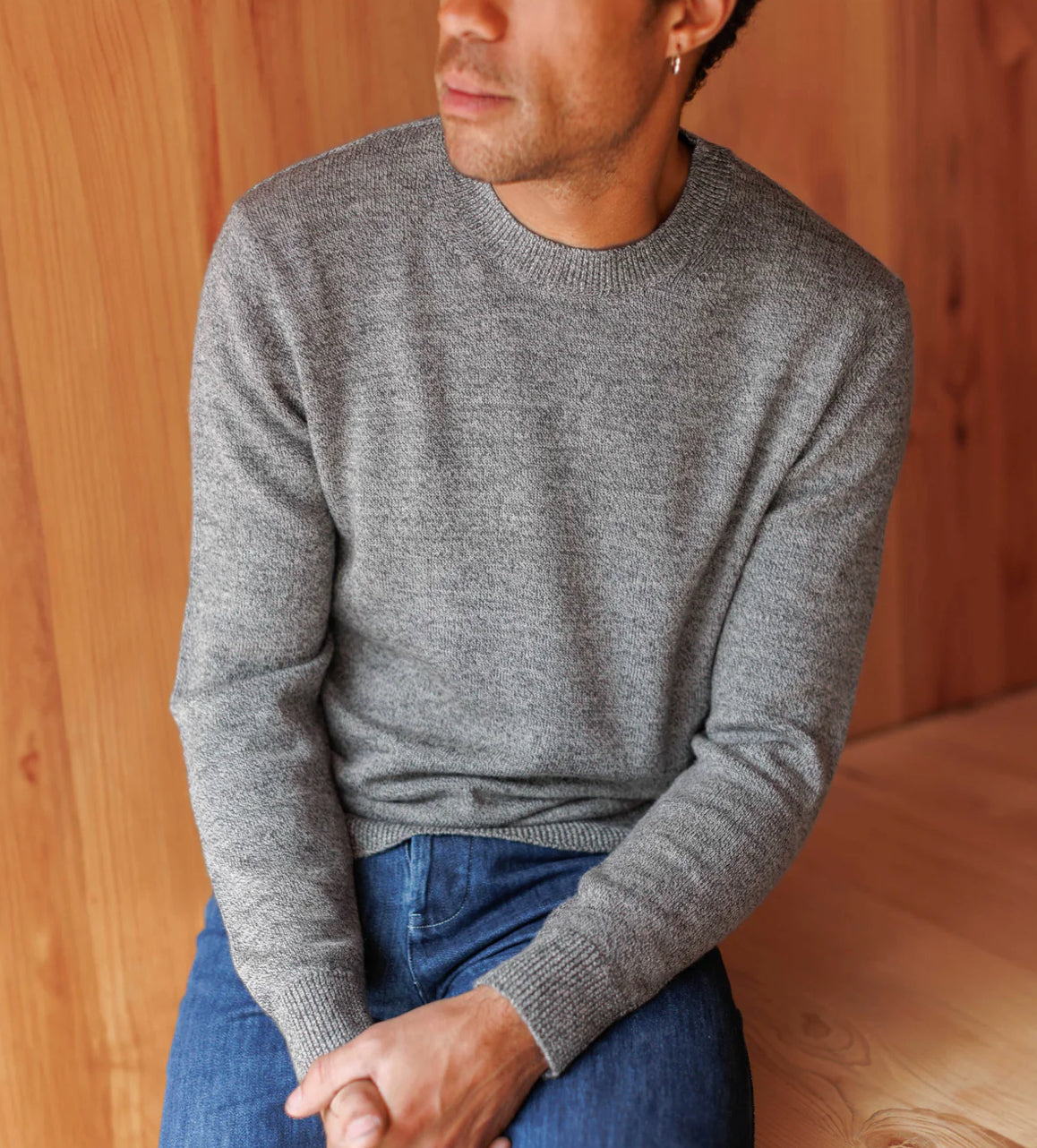 The Campo Sweater is expertly made from 100% merino wool, featuring marled yarns and a stylish crewneck design. It is perfect for layering over any button-up or t-shirt for a polished and versatile look.