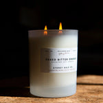 A handmade premium soy wax blend candle with a double cotton wick in a glass jar. A resinous fragrance that entices multiple senses. Charred oak and patchouli add great depth to this bold and bitter citrus fruit.