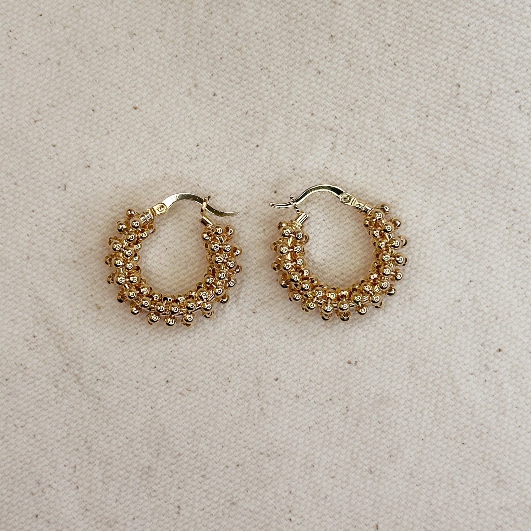 Indulge in timeless elegance with 18k Gold Filled Beaded Cluster Hoop Earrings. These classic yet fun earrings showcase exquisite craftsmanship, making them the perfect accessory for any occasion. Add a touch of luxury to your wardrobe and elevate your style with these stunning hoop earrings.