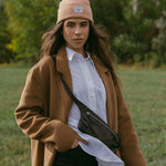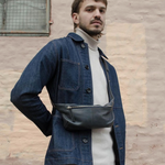 Sleek, slim, and chic, this unisex crossbody hip bag will take your style to the next level. It's minimal design will surprisingly carry all of your essentials for days and nights on the town. Hand crafted using vegetable tanned leather, in black, this fanny features a single zip pocket lined in printed cotton and has an adjustable strap.