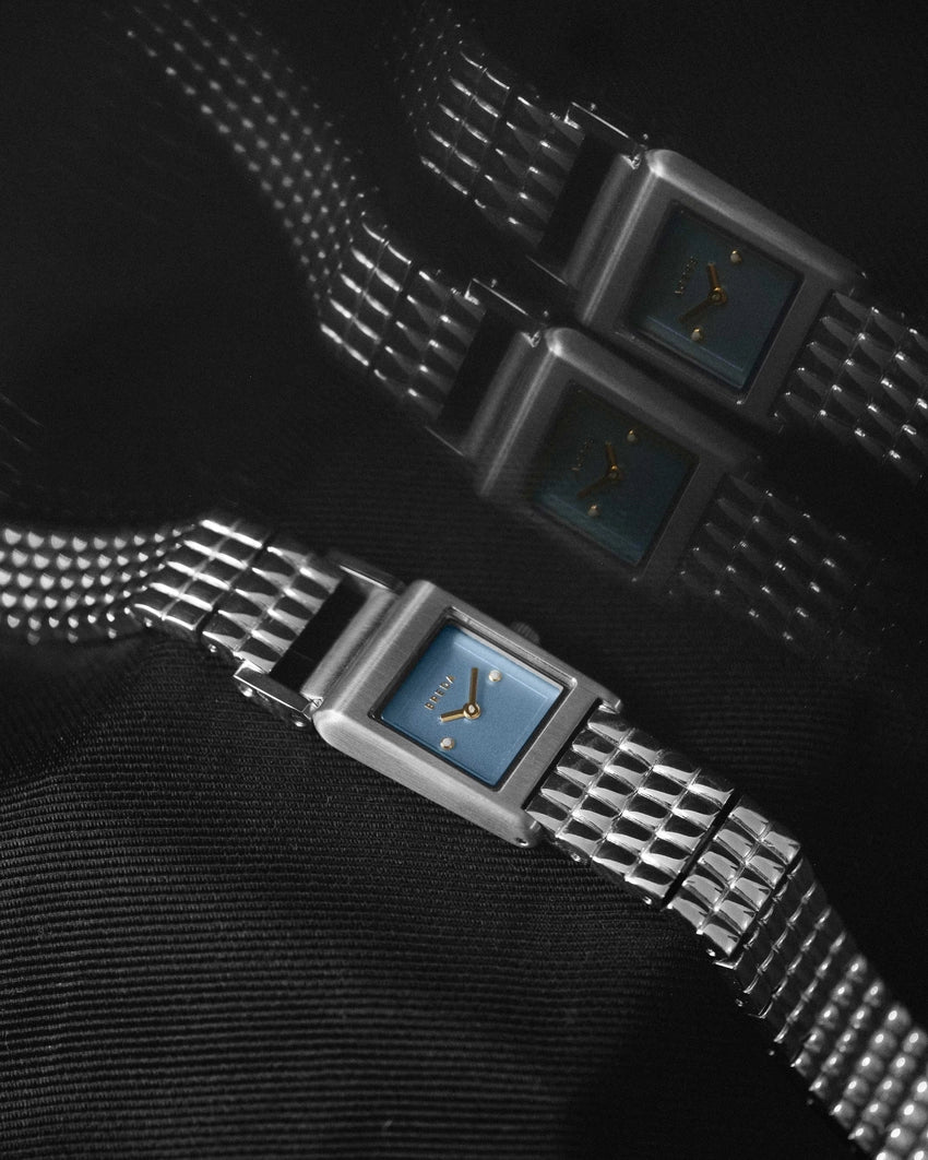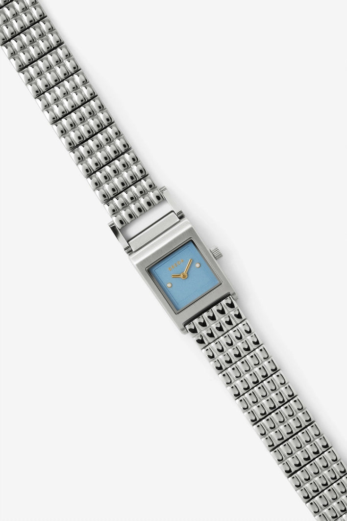 Embracing moments of resiliency, the Revel exists as a reminder of power and personality. Carrying a petite 18mm squared case and 14mm bracelet this timepiece presents a delicate buckle feature and fastens with a jewelry clasp.