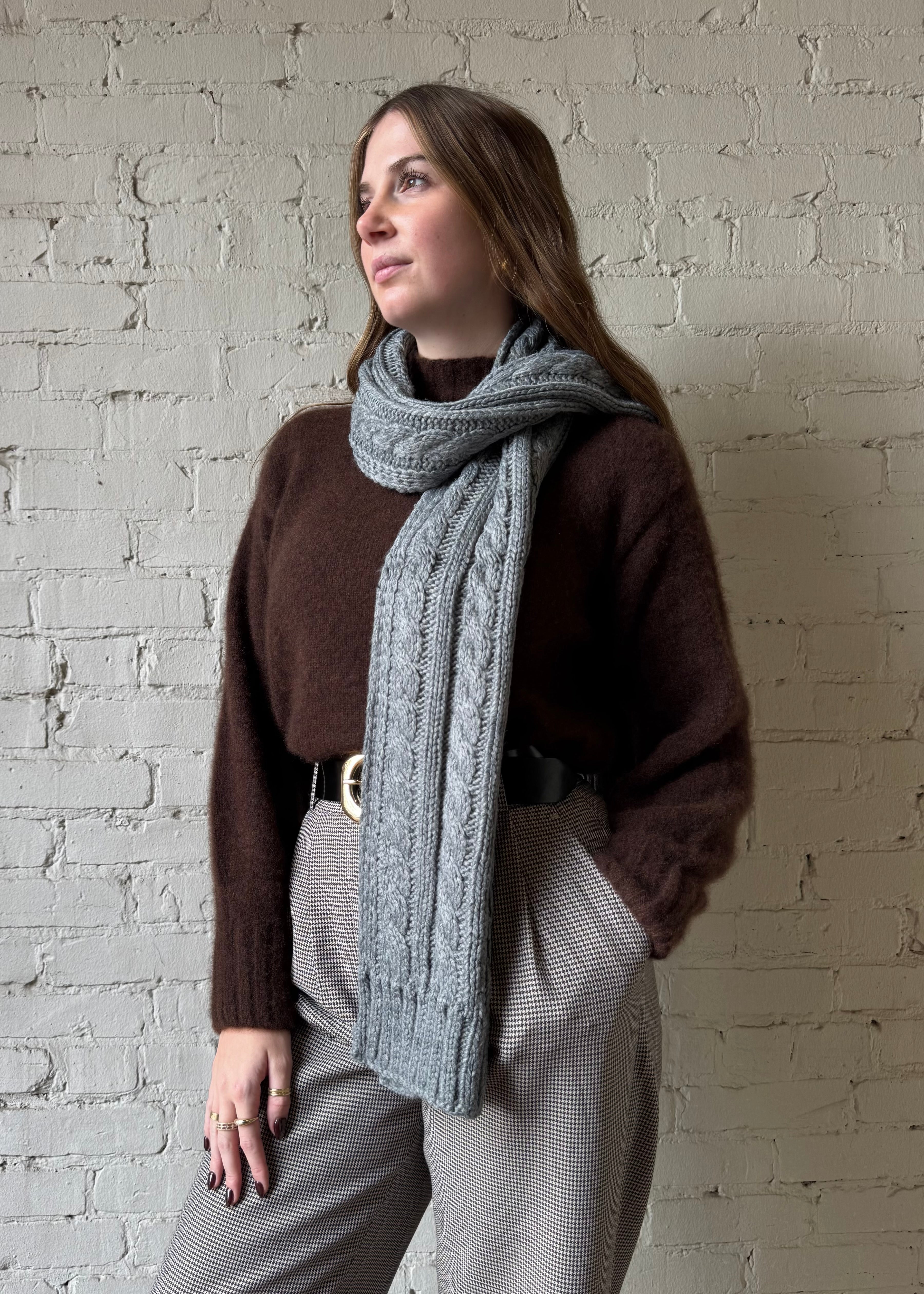 Cable Knit Scarf - Light Grey