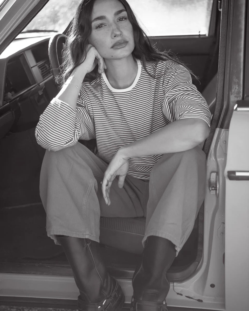 The Billie Shirt reimagines the timeless French stripe through the Sønderhaus lens. It’s our take on the long sleeve tee you’ll reach for over and over — casual yet elevated, with a touch of structure that makes it fall-ready.