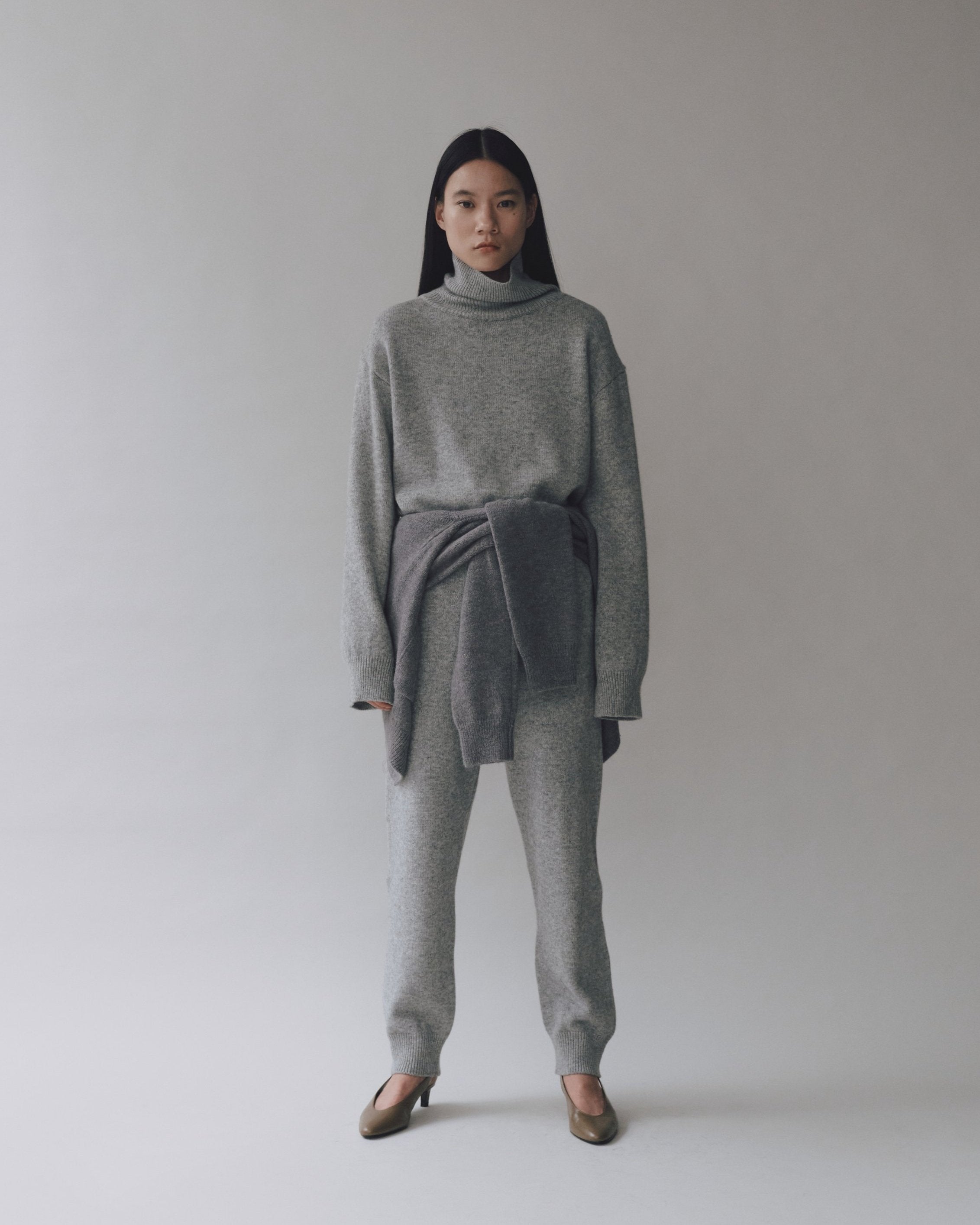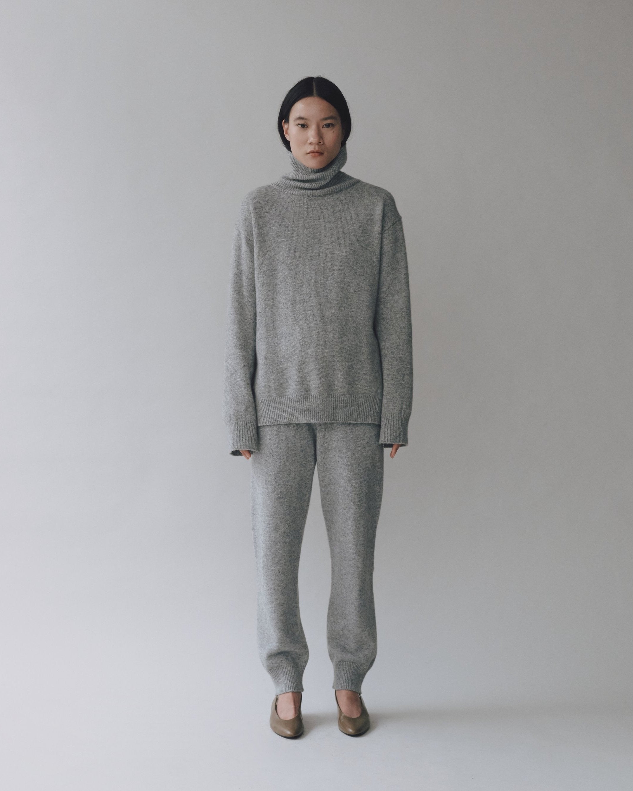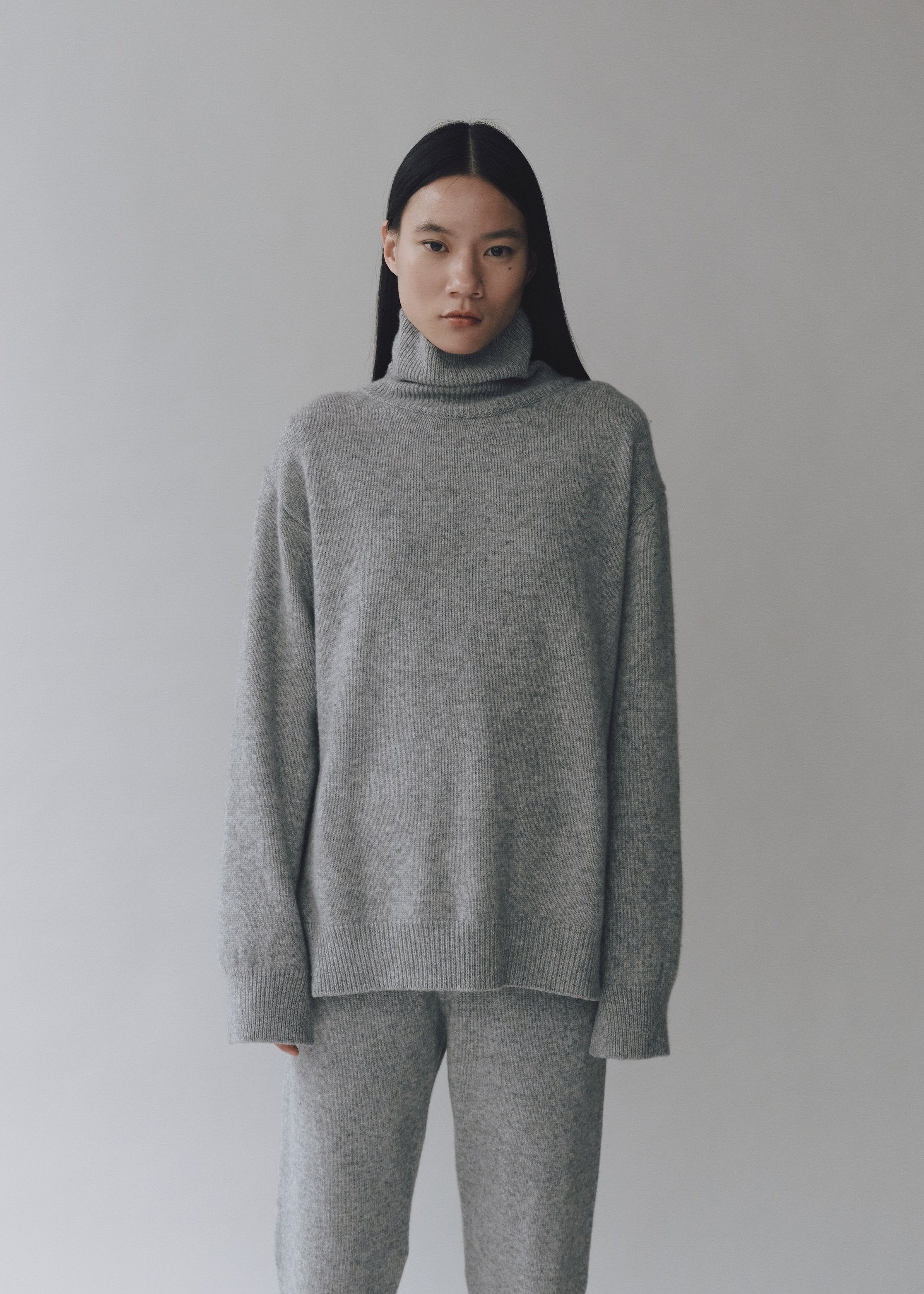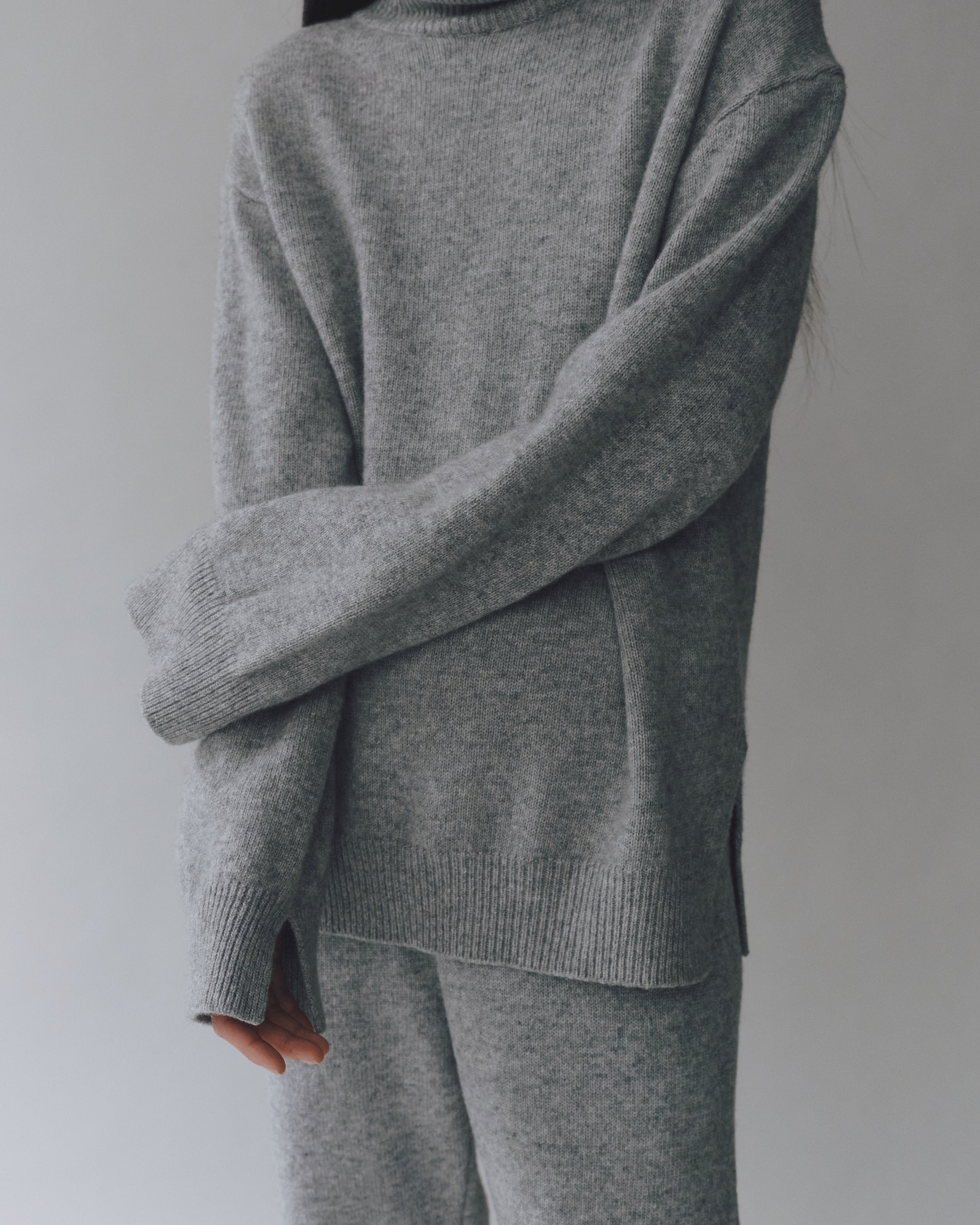 Elevate your winter wardrobe with this Cashmere Blend High Neck Knit. Made with luxurious cashmere, this sweater will keep you warm and stylish. The high neck design adds a touch of sophistication while the grey color makes it versatile for any outfit.