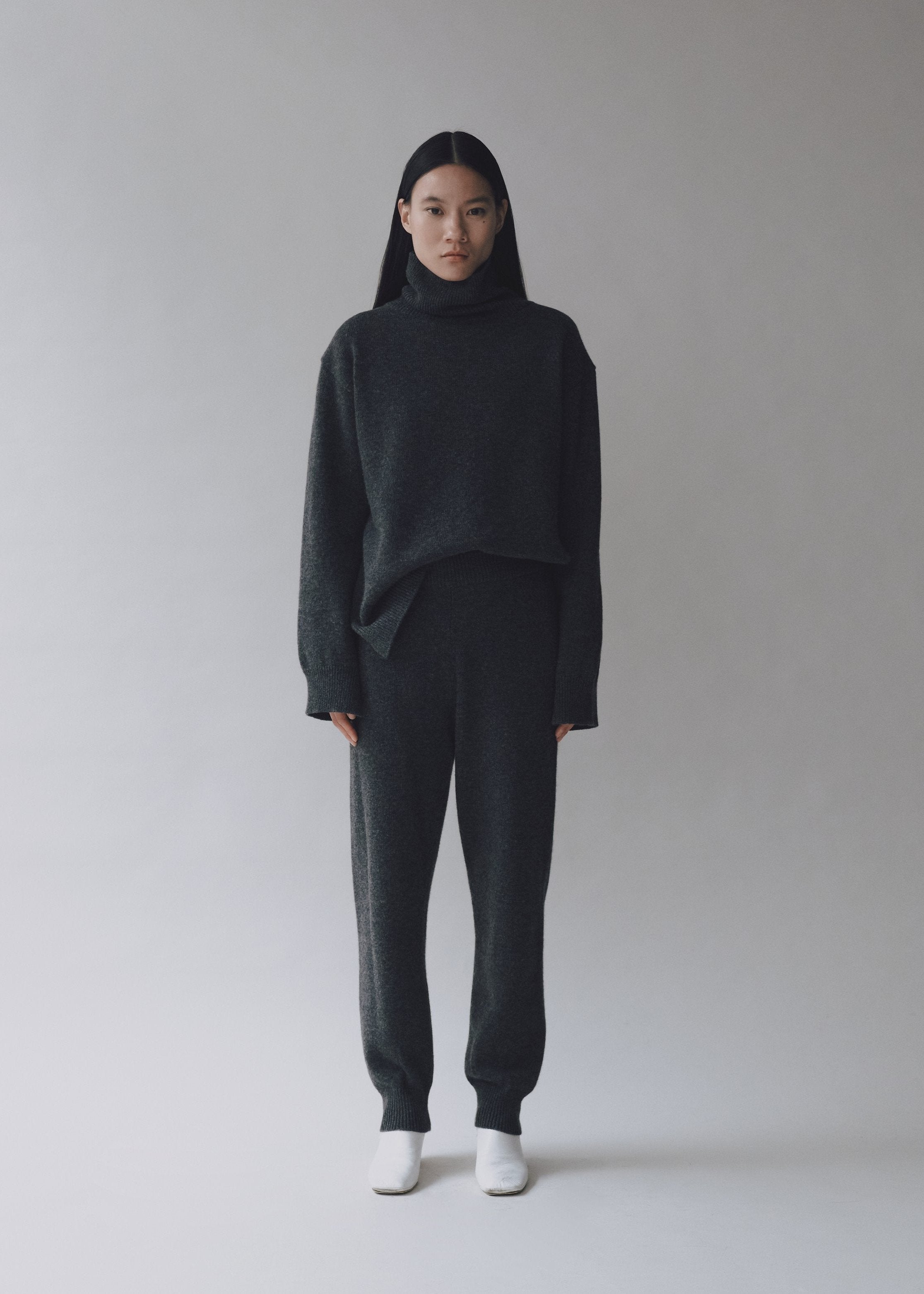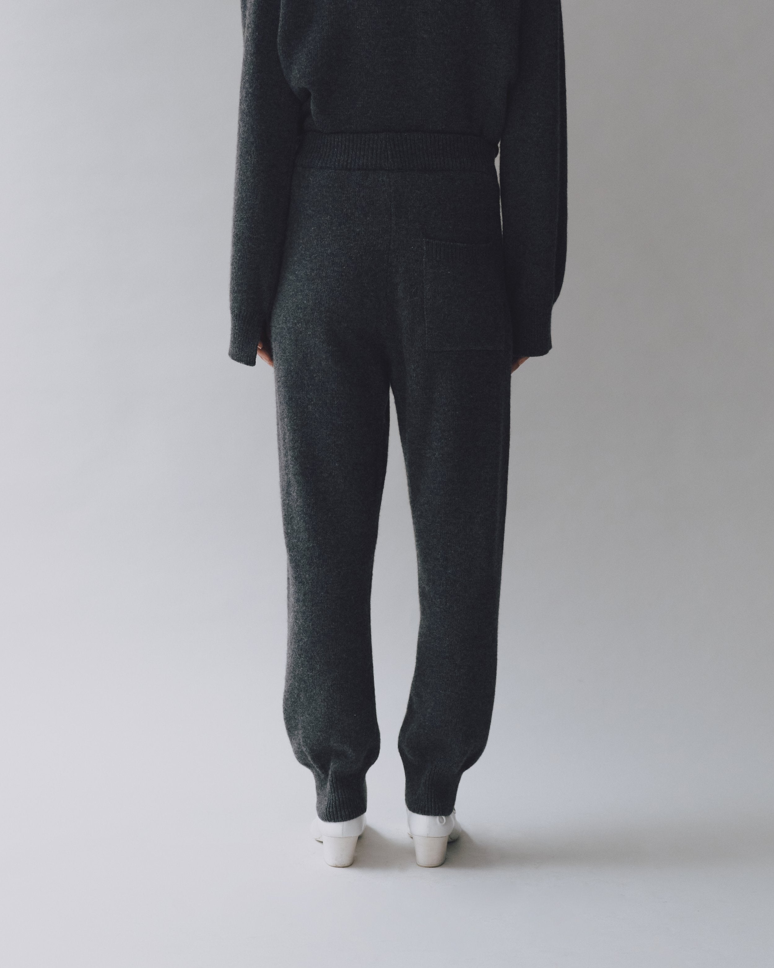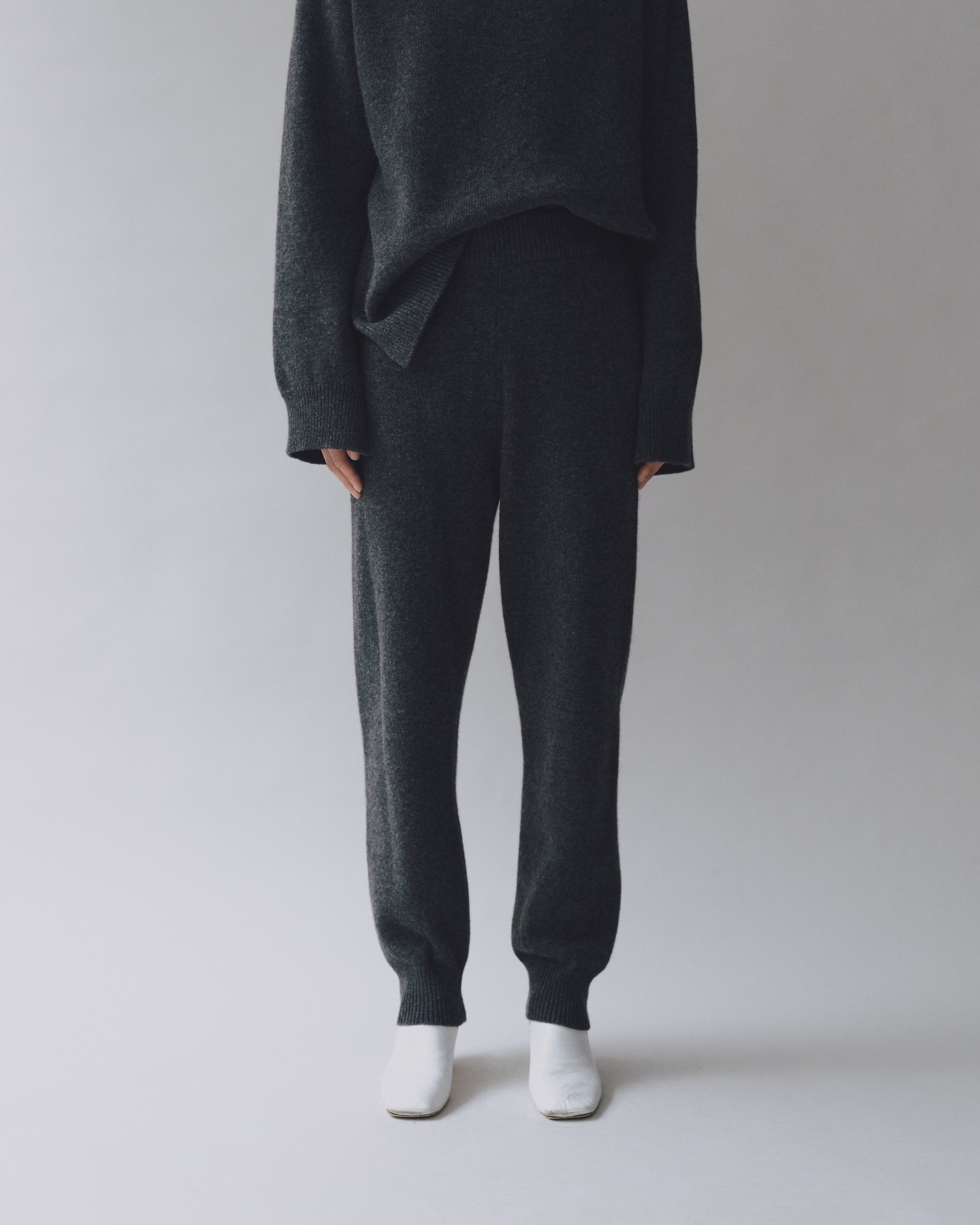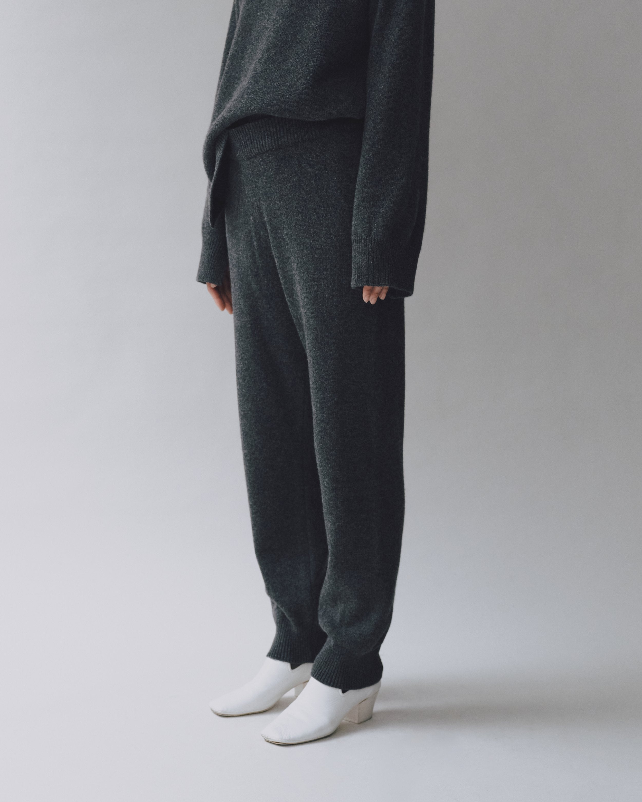 Expertly crafted from a soft and luxurious cashmere blend, these Charcoal Knit Pants provide both comfort and style. With a touch of indulgent elegance, these pants make the perfect addition to any wardrobe. Enjoy the softness and warmth of cashmere while looking effortlessly chic.