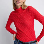 Fitted long sleeve top with a high neckline and delicate daisy lace jersey. The semi-sheer design works beautifully layered or worn alone for an effortless, elevated look.