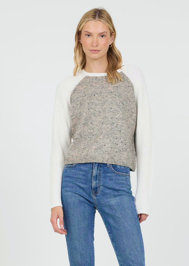 White and speckled grey raglan sweater. The perfect collegiate vibes for fall.