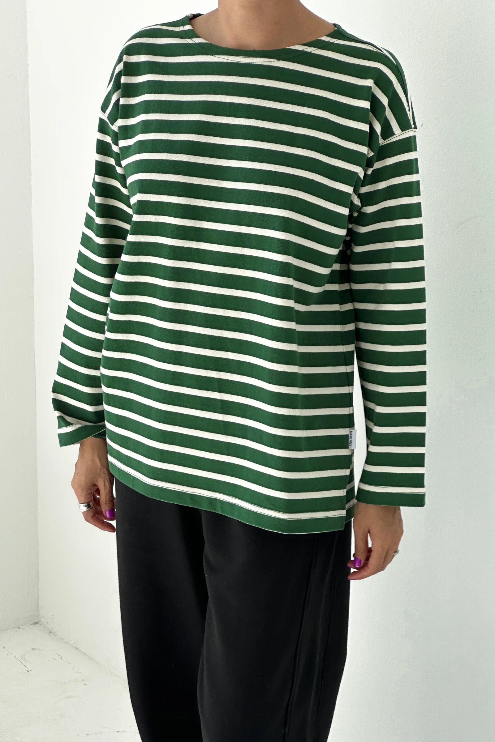 The Marseille Top takes inspiration from the timeless Breton stripe uniform, featuring a classic round neckline and an oversized, full-length fit that gently sweeps the hips. Small side slits allow ease of movement while maintaining the top’s effortless shape. Crafted from durable, heavyweight cotton, it offers structure without sacrificing softness, making it an ideal choice for both elevated and casual looks.