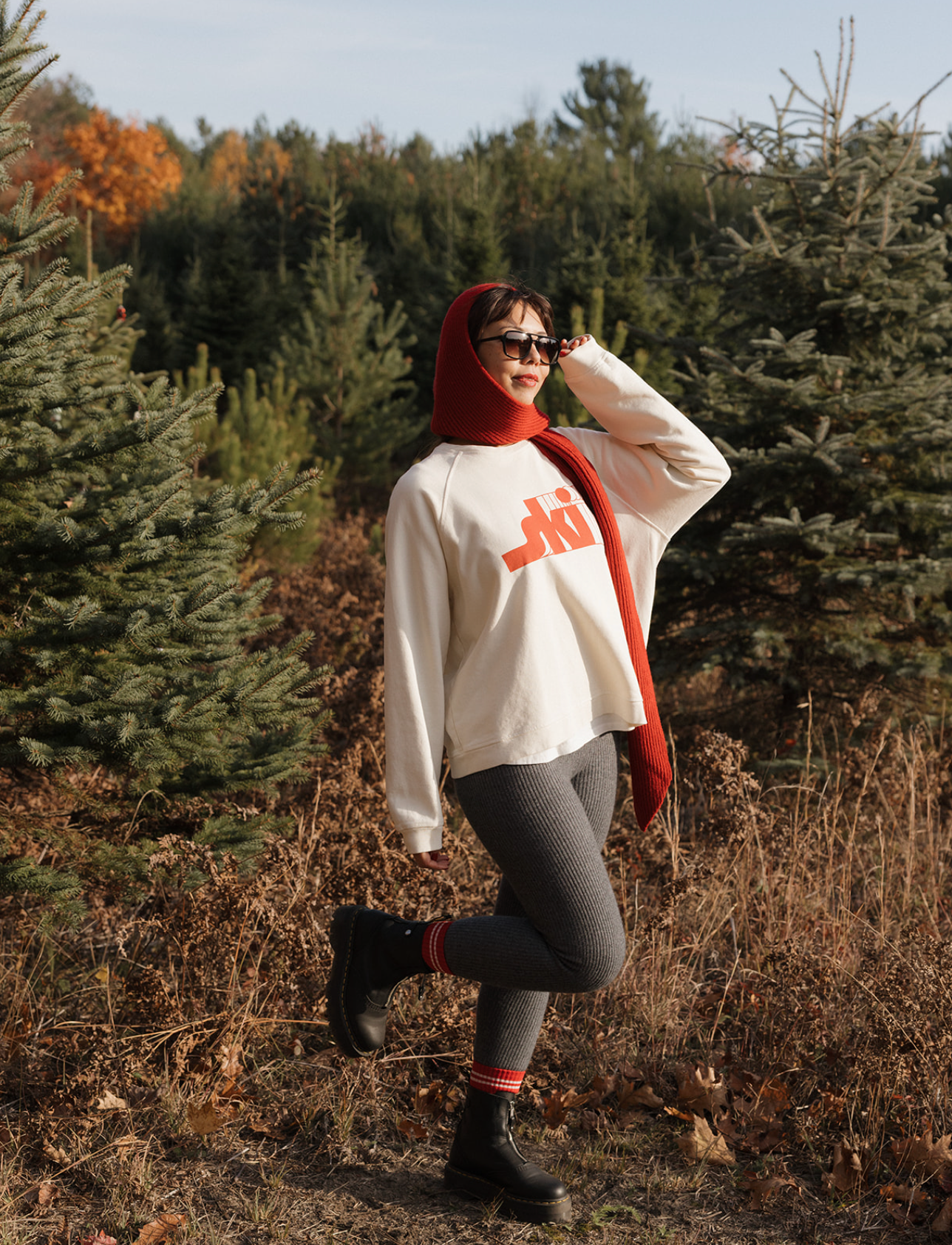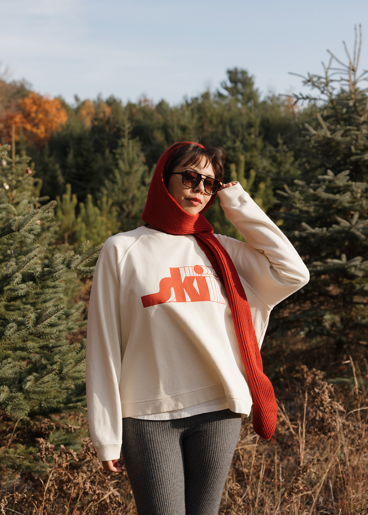 Raglan Crew sweatshirt offers a relaxed and sporty fit, designed for comfort and freedom of movement. It is perfectly oversized, with the hem sitting around the hips. The Ski raglan crew is pure retro fun. It gives ready for hot cocoa after a long run (or just looking the part). With its punchy red lettering and vintage slope vibe, it channels playful winter energy without the chill. Think après ski spirit, no lift ticket required.