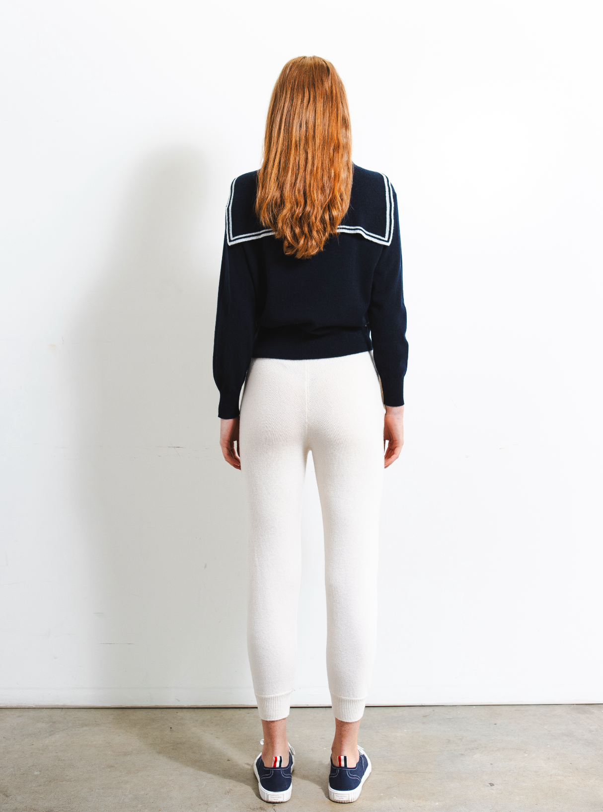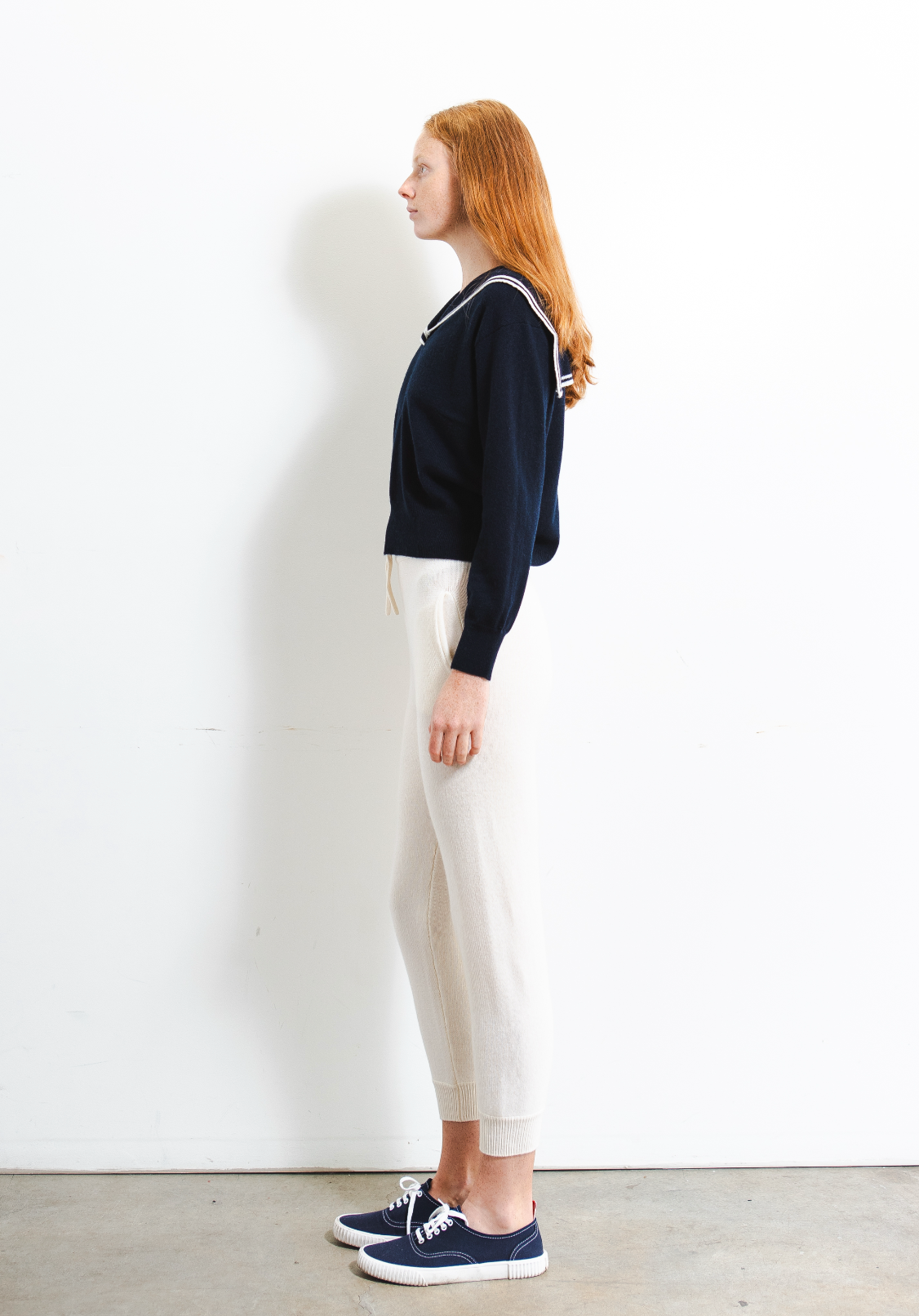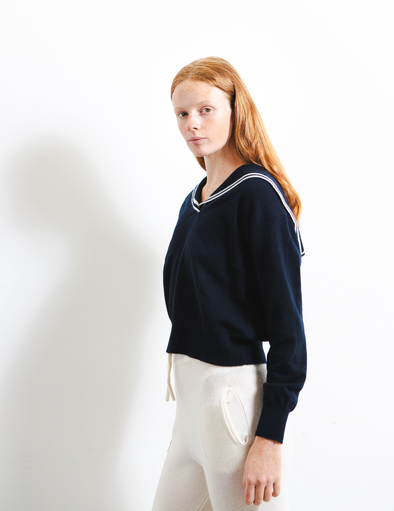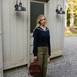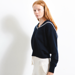 This dark navy sailor collar top offers a classic nautical look with a relaxed fit that's easy to wear. Its timeless design pairs well with casual or dressy outfits, making it a versatile addition to your wardrobe. The soft fabric ensures comfort throughout the day, while the distinctive sailor collar adds a touch of charm to your style.
