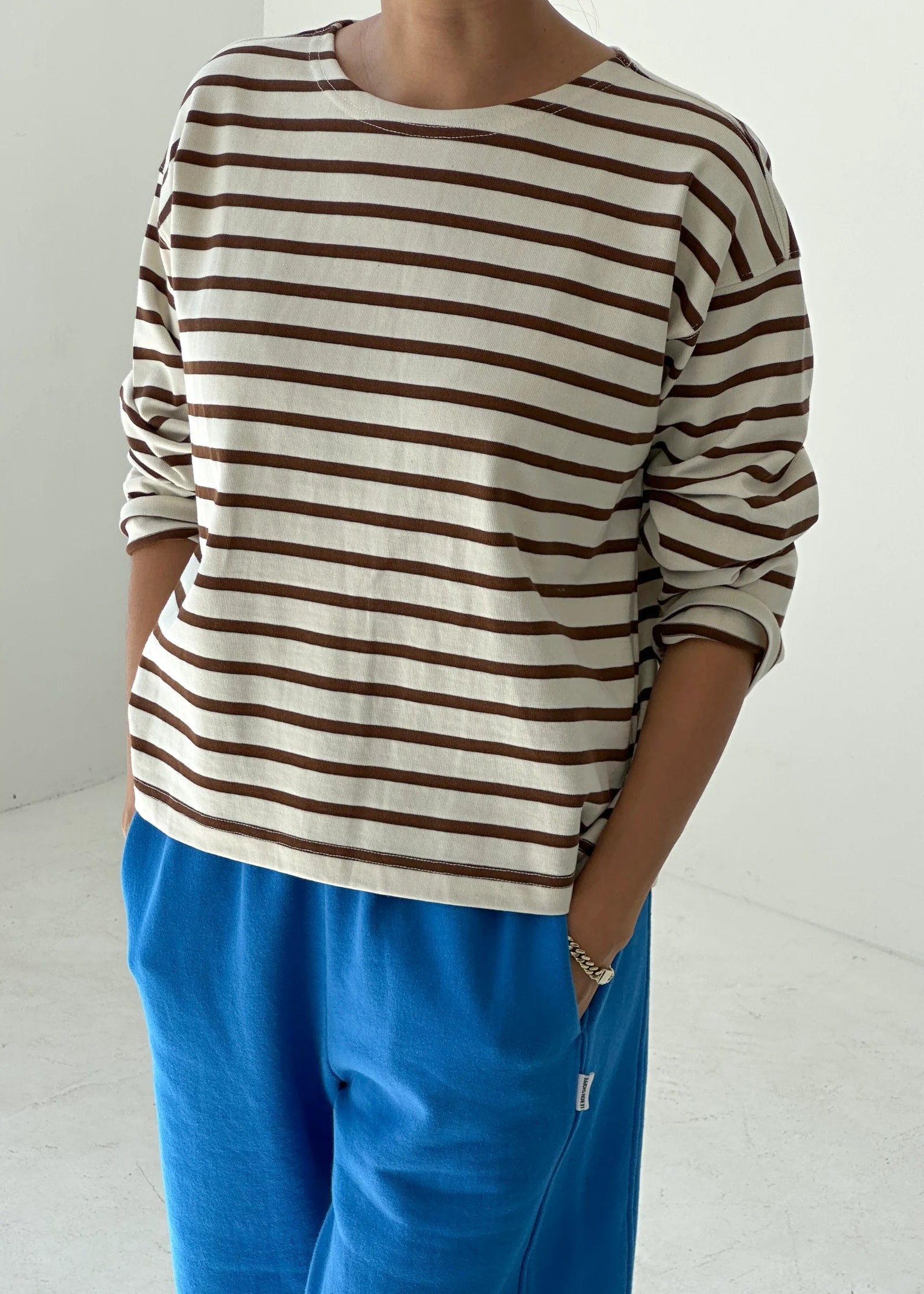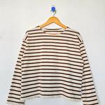 A nautical long sleeve with a classic fit. Stripe and boxy shape, but updated with a flattering round neckline and a slightly cropped length that pairs effortlessly with high-waisted bottoms.
