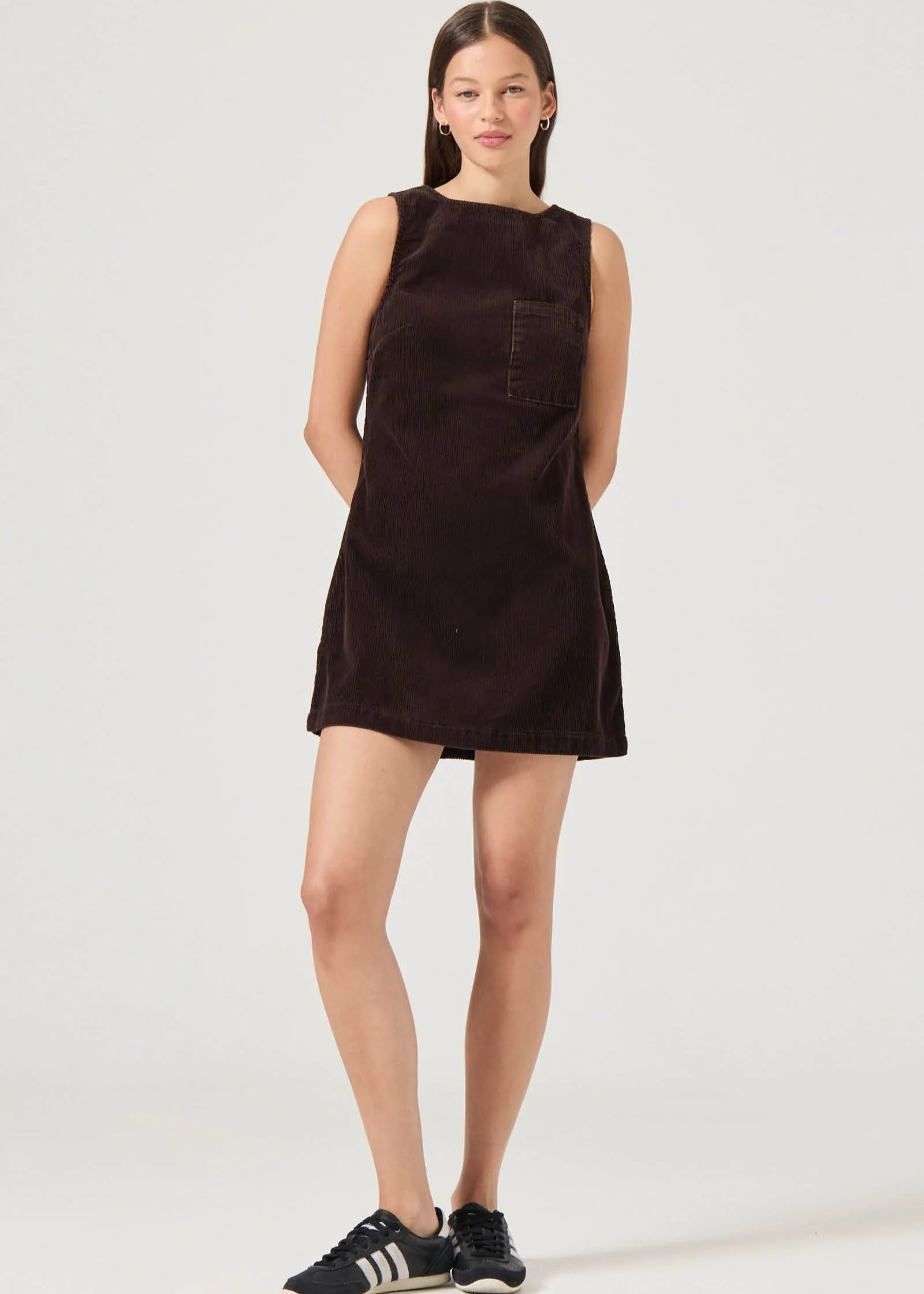 The Classic Shift Dress is a timeless staple with a modern edge, featuring a flattering shift silhouette, rounded neckline, and invisible back zip. Made from 100% cotton corduroy in deep chocolate brown, it’s equal parts polished and effortless.