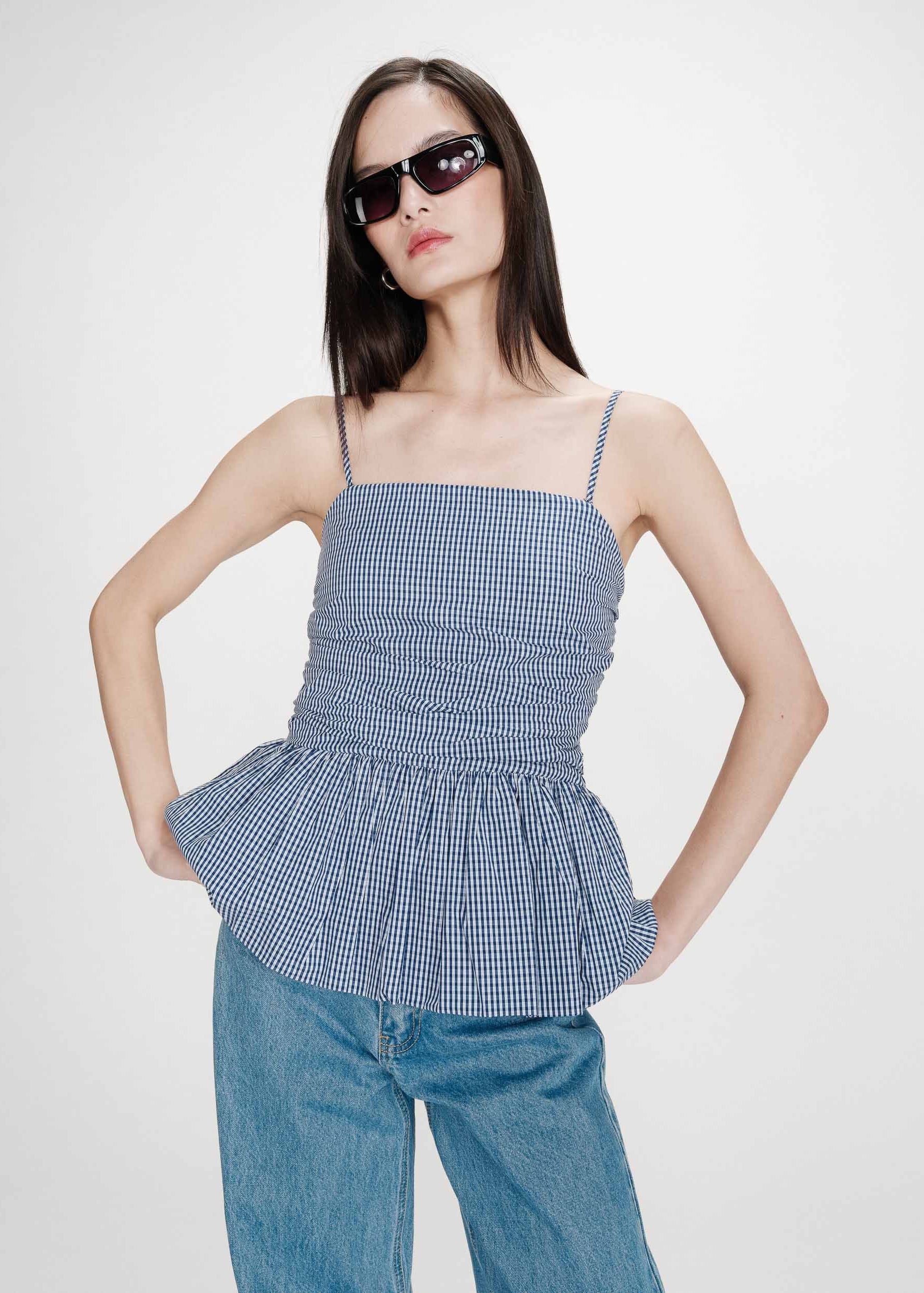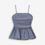 Trendy and minimalist, the Valo sleeveless top is made from 100% cotton. The square neckline, fitted cut, and thin straps of the Valo peplum top make it a modern and clean piece. Side gathers and the balloon hem add lightness and volume. The top closes with an invisible side zipper and features an elasticated back.