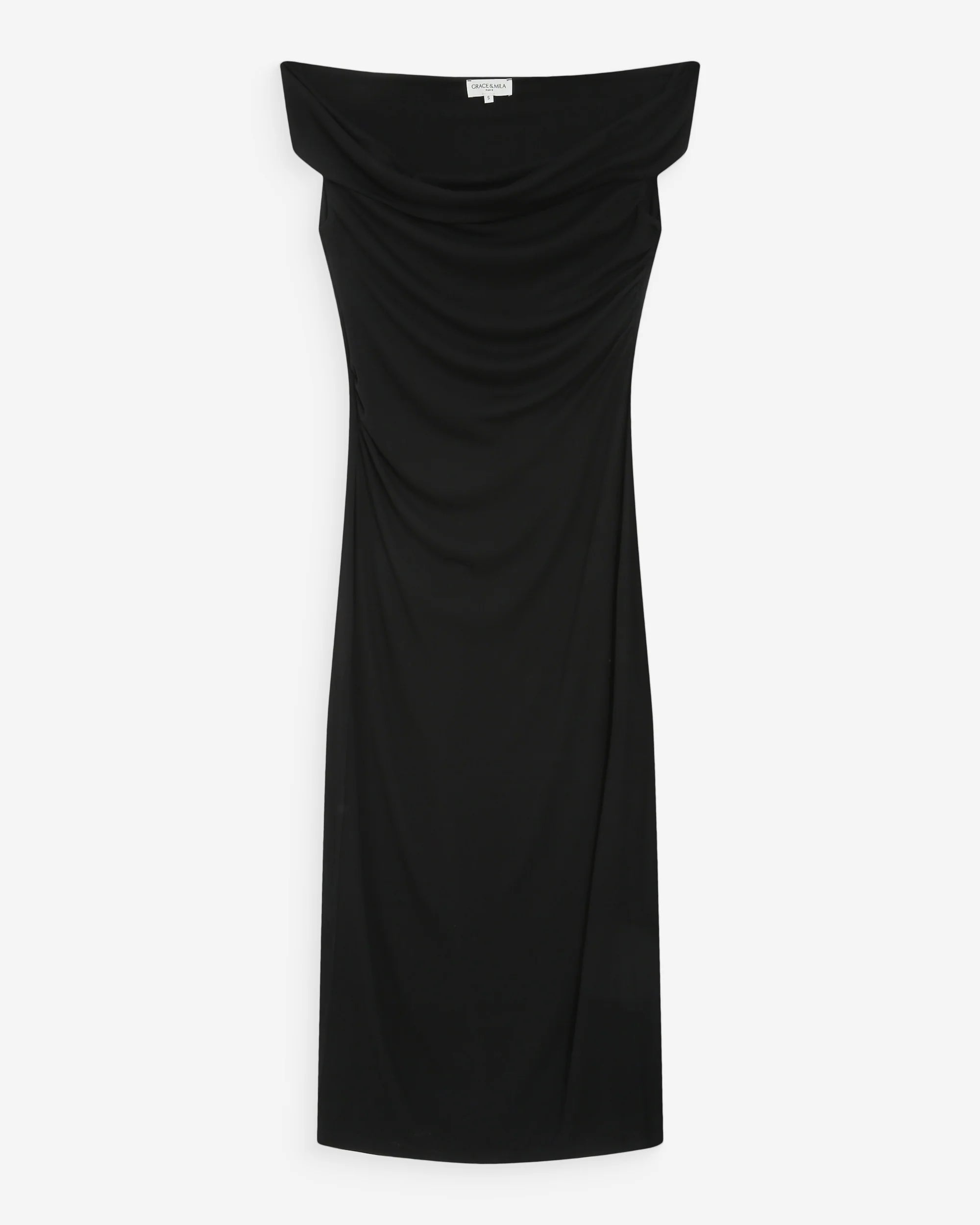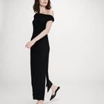 The fitted cut of the Vanity long dress is enhanced by gathers at the shoulders and waist, creating an elegant and feminine draped effect. The model, easy and pleasant to wear, is made from a soft jersey fabric. The Vanity draped dress features an asymmetrical neckline that delicately reveals one shoulder.
