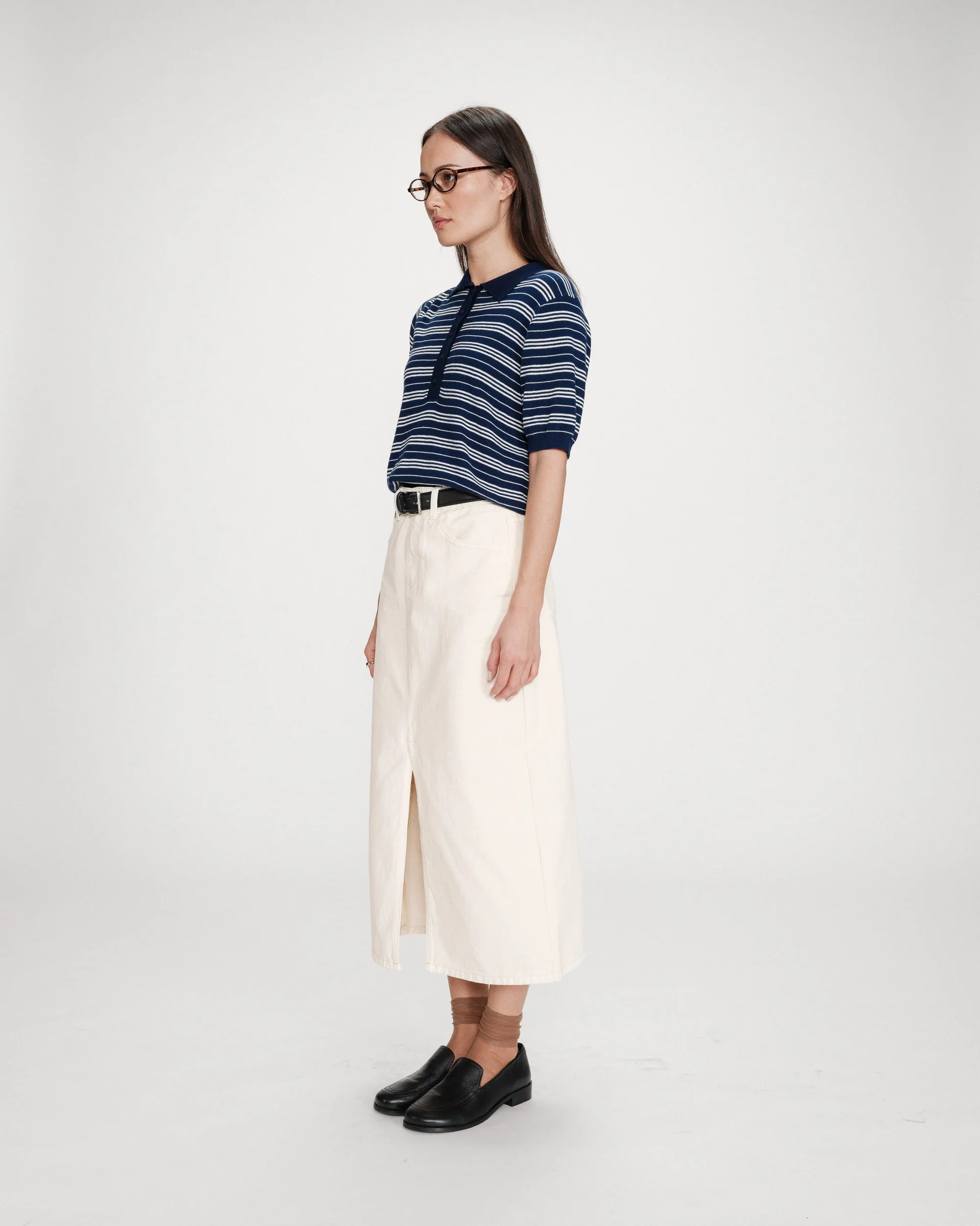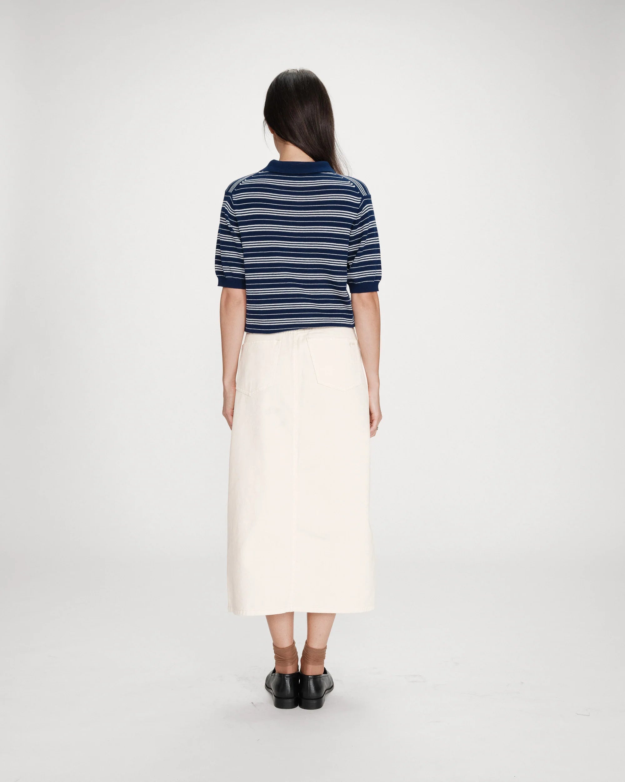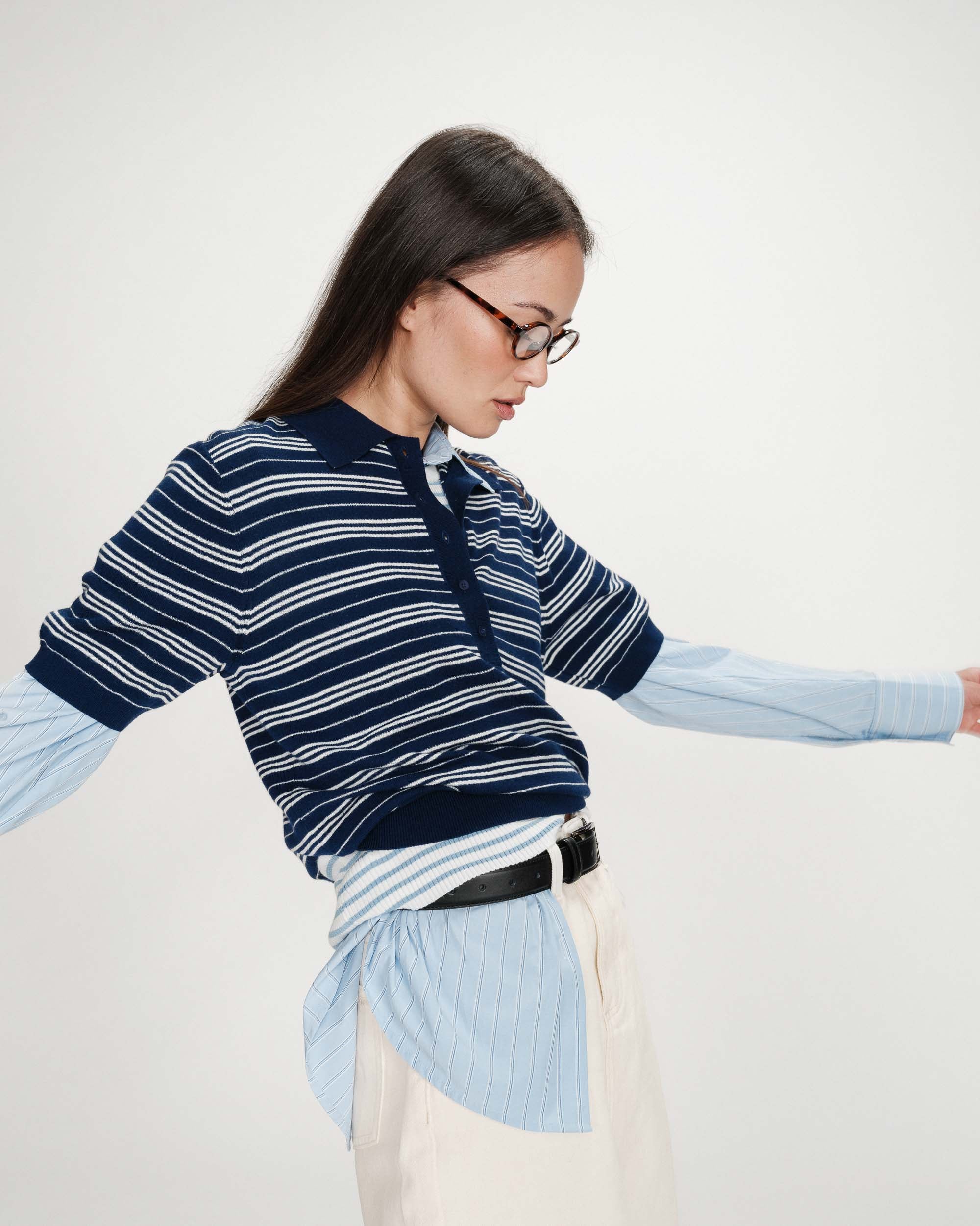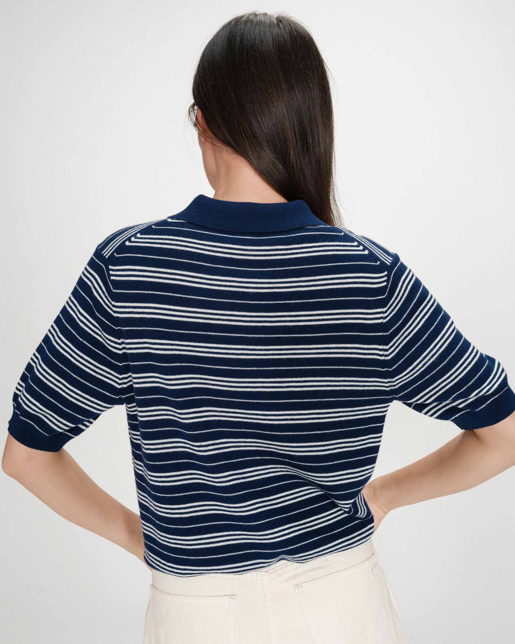 Knitted from a fine blend of wool and silk, the Veracruz mid-length sleeve sweater offers a chic and relaxed look. The ribbed finishes on the sleeves and hem subtly structure the silhouette. The stripes on the Veracruz polo sweater make it a modern and trendy piece.