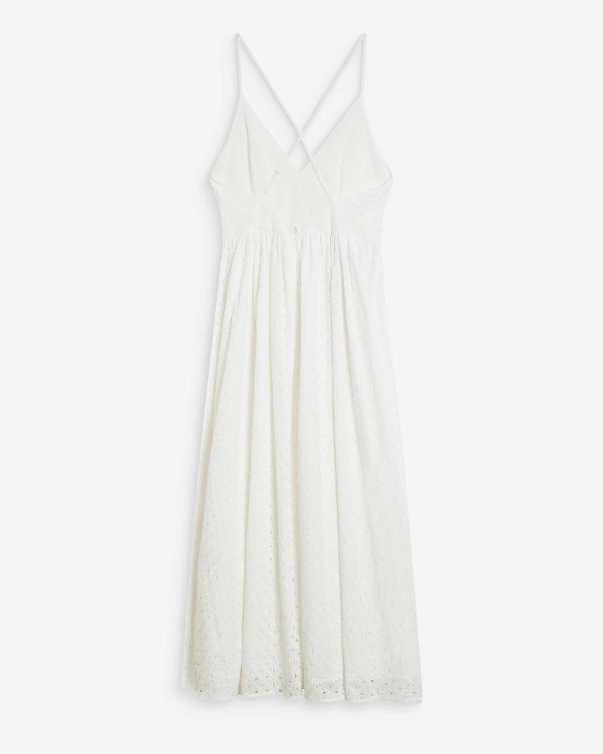 Made from eyelet fabric, the Wimala is a feminine, romantic-inspired piece. The V-neckline combines with criss-cross straps at the back, while the hem creates a flattering and elegant volume.